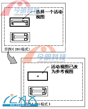 CH8_044 (2)、将一个活动视图改为一个参考视图,该视图的几何体将不再显示,而且会在视图边界出现一个参考标记。参考视图中的几何体尽管不显示在屏幕上,但仍然会打印。转换为参考视图的视图在未再次激活之前不会更新,即使更改角度、比例或铰链线,它们也不会更新。