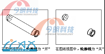 CH8_043 (1)、每当建模视图放置在图纸上时,系统生成轮廓曲线。“轮廓线”选项控制轮廓线在图纸成员视图中的显示。如果该选项处于“开”状态,将为所选图纸成员视图添加轮廓线。如果该选项处于“关”状态,则从所选成员视图中移除轮廊线(见下图)。