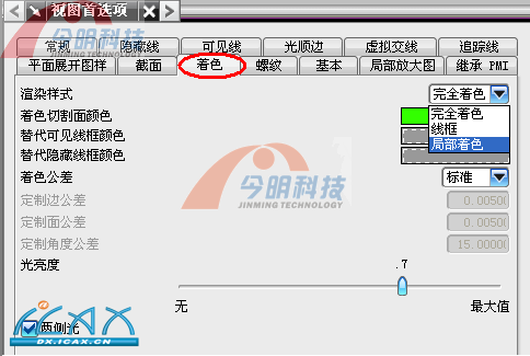 (3)、装配剖面线:装配剖面线”选项允许用户控制装配剖视图中相邻实体的剖面线角度。