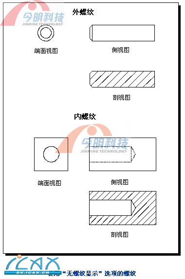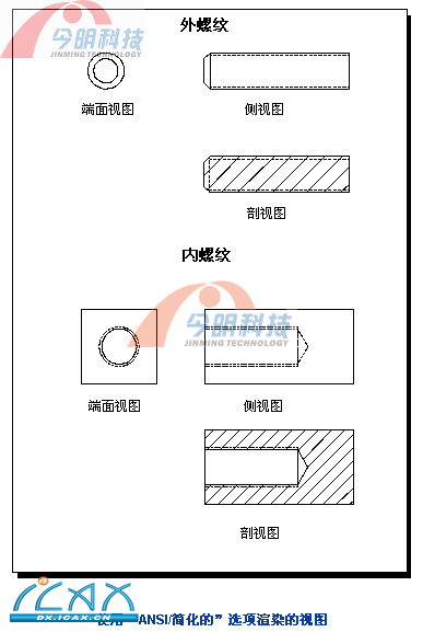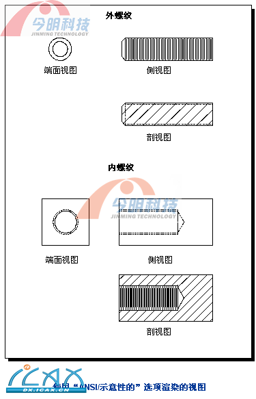 CH8_057 G、螺纹:可以在图纸上的视图中的内、外螺纹创建 ANSI 和 ISO 螺纹表示形式。