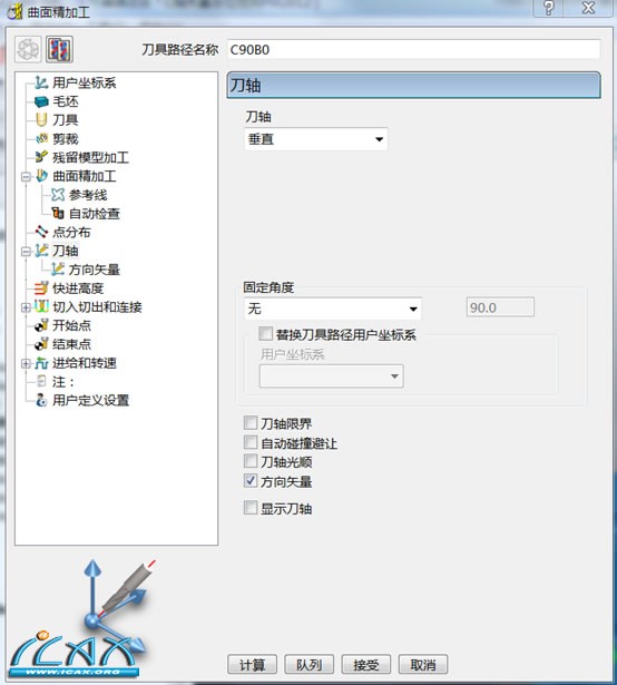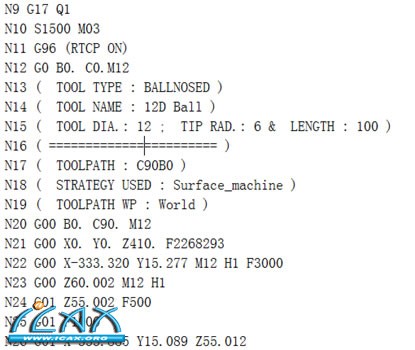 1、PowerMILL 中如何输出正确的A轴和C轴角度? 使用在PowerMILL“矢量方向”功能,并使用PM-POST定制的后置处理文件,可以正确输出AC轴角度,这对于3+2轴路径尤其有用! 这种方法可以解决以下问题: 1、解决C轴角度不等于0,而B轴角度等于0的情况下,能够正确输出C轴角度。 2、避免因为编程人员没有给操作人员讲清楚C轴角度多少时,操作人员忘记修改C轴角度而出现的主轴干涉现象,严重的会造成撞机发生。 3、可以加工很多只旋转C轴就能加工的区域,提高加工效率。 2、如何使用 PowerMILL 中的矢量方向功能? “矢量方向”的具体使用方法如下: 1)、在任意加工策略对话表格,打开“刀轴”选项,见下图: 2)、点击“方向矢量”打开此选项开关,并进入“方向矢量”对话框菜单,见下图: 在上图设置“固定方向”,方位角=90度(类似于C轴),仰角=0度(类似于B轴)。 3)、计算NC程序 4)、输出NC程序,注意输出坐标系类似于正常情况下的3+2轴设定,坐标系选择世界坐标系或用户自定义的输出坐标系。见下图: 打开NC代码,可以看到C轴角度90度已经正确输出了(如下图所示): 5、在PowerMILL加载已经定制好的带矢量定位功能的仿真机床,仿真刚才的刀具路径:可以看到C轴90度,B轴为0,正确仿真并避免机床主轴和工件的干涉。 |