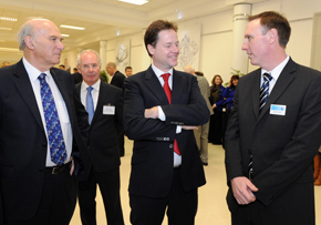 在2003年2月28日于英国 Gaydon 举行的英国制造业峰会上,英国副首相,自由民主党党魁 Nick Clegg 先生和英国商务大臣 Vince Cable 及其他英国一些工商政要及专家学者,专门观看了Delcam PowerMILL的机器人加工编程演示。 本次英国制造业峰会是由英国商业创新和技能部举办,250名来自英国领先制造企业的主要负责人参加了本次峰会,英国副首相、商务大臣、工商部长和科技部长在内的众多政府和工商企业要员也出席了会议。英国副首相,自由民主党党魁 Nick Clegg 先生携英国商务大臣 Vince Cable 还专门观看了Delcam PowerMILL的机器人加工编程演示,并和 Delcam 技术人员进行了交谈。 Nick Clegg(中),Vince Cable(左)和Delcam 技术人员亲切交谈 PowerMILL 机器人加工编程演示在一台 KUKA 机器人上进行,所加工的模型为伦敦奥运吉祥物Wenlock 以及伦敦奥运会期间使用过的吉百利巧克力模型。 轻松简便的机器人编程可充分发挥机器人加工的优势。对相似工作面而言,机器人的安装比大型机床的安装成本要低许多。此外,机器人的灵活性,使它可通过一次设置就能完成一个复杂部件的加工,减小装夹次数,缩短加工时间。 PowerMILL机器人模块,支持包括KUKA, ABB, Fanuc, Motoman, Staubli在内的众多知名品牌的机器人。PowerMILL机器人模块能让多达8轴的机器人编程和5轴NC编程一样简单。新的PowerMILL机器人加工模块使机器人加工编程更轻松,可用于更广的范围。通过3D CAD数据进行离线编程,可比传统的示教编程方法更快、更有效。精确的3D仿真能准确显示机器人的动作,使您能完全放心地使用所编制的NC程序。 PowerMILL机器人模块可使您更容易加工大型零件,使您具有更大的自由度 ,能在矿山、复合材料、核工业等恶劣环境下工作,具有很高的灵活性和适应性 。您能在一个单独的应用程序中进行全机器人编程和仿真。PowerMILL机器人模块可广泛应用于生产中的多个领域,包括石雕、木雕、 泡沫和树脂模型加工、 等离子切割、激光切割、激光喷镀、准确连续的弧焊(点焊、弧焊)、涡轮叶片和喷气式叶片修复 、复杂3D工件的无损测量 、 喷涂等多个领域。 |