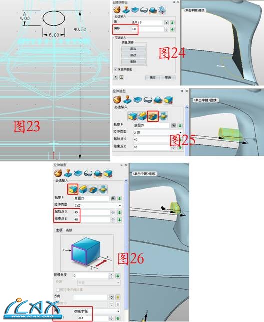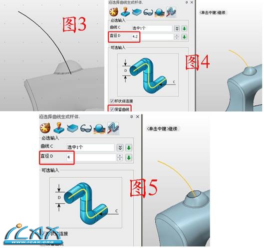 在《三维CAD速成教程:详解电熨斗曲面建模》的教程中,小编已经跟大家分享了电熨斗外型主体部分的曲面建模技巧。接下来,小编将以中望3D为示例软件,通过分享电熨斗细节零部件的三维CAD设计过程,帮助正在学习3D设计的朋友们,能够更加全面地了解三维CAD软件基本功能应用。有兴趣的朋友可以到中望3D技术论坛免费下载电熨斗三维CAD图纸(//www.zwcad.com/community/thread-11315-1-1.html),接下来将为大家说明电熨斗细节部分的建模过程。 1、在XZ面插入草图1,绘制半径为4的半圆,如图1,点击旋转——加运算,轮廓为草图1,轴为半圆的直径,起始和结束角度分别为0和360度,对相交边缘做圆角处理,如图2。 2、在XZ面插入草图2,绘制图3所示的曲线,点击杆状扫掠,曲线选择草图2,直径为4.2,注意,在“保留曲线”前打勾,如图4。点击组合——减运算,把扫掠后的圆柱减去,形成孔洞,再次点击杆状扫掠,曲线选择草图2,这次直径为4,将“保留曲线”前的勾取消,如图5。形成电线从孔里伸出的效果。 3、在YZ面插入草图3,绘制图6所示的3个矩形,退出草图,点击拉伸——减运算,两次拉伸草图3,参数如图,形成图7所示的效果,注意第一次拉伸时选择下方的“保留轮廓”。在YZ面插入草图4,绘制图8所示的2个矩形,退出草图,点击拉伸——减运算,拉伸草图4,效果如图9。这两个草图中的矩形只要位置大体差不多即可。 4、在YZ面插入草图5,绘制图10所示的曲线,可以随意一些,点击杆状扫掠对草图5扫掠,直径为3。效果如图11。 5、在YZ面插入草图6,绘制图12所示的两个曲线,分别拉伸草图6的两个曲线(可将属性过滤器置为曲线,这样可以分别选择曲线),如图13,点击分割,基体为下方造型,分割面为下方曲面,造型分割为两部分,同理,将把手也分割成两部分,这个步骤的作用是为后面的设色做准备。 6、在XY面插入草图7,绘制图15所示的圆,点击拉伸——加运算,拉伸草图7,如图16。点击拉伸,轮廓为图16的上圆面,拉伸距离为0.3,注意偏移选项为“收缩/扩张”偏距为-7。同理,再次拉伸,参数如图18,对边缘做圆角,如图19。 7、在YZ面插入草图8,绘制图20所示的图形,点拉伸——基体,拉伸类型选择对称,轮廓为草图8,结束点为0.15,对边缘做圆角处理,圆角半径为0.18,如图21,点击阵列——圆形,基体为图21的拉伸体,方向为圆柱的轴心方向,数目为30,角度为12,如图22。 8、在XZ面插入草图9,绘制图23所示的椭圆,参数如图23,点击曲面——面偏移,面选择图24所示的部分,偏移0.8,隐藏此偏移面。点击拉伸——减运算,轮廓为草图9,参数如图25,点击拉伸——基体,再次拉伸草图9,参数如图26,注意偏移和偏距的选择。 9、显示出步骤8中隐藏的偏移曲面,点击修剪,基体为步骤8中的拉伸体,修剪面为偏移曲面,如图27,注意白色箭头指向为要保留的部分。对主体和孔的边缘做圆角处理,如图28,点击面属性,对造型的各个部分设色,效果图如下。 至此,电熨斗各个零部件的三维CAD建模就完成了,结合电熨斗的外型主体曲面教程,3D设计初学者可以更快熟悉一个完整的三维CAD操作流程。如果在自学的过程中,有任何疑问,可以到中望3D专家培训栏目——跟奉老师学3D(//www.zwcad.com/community/forum-70-1.html)提问题,奉老师会第一时间解答你的疑问,还有奉老师倾心编制的三维CAD教程,帮助你快速掌握3D设计。 中望3D三维CAD/CAM软件 免费下载:www.zw3d.com.cn |