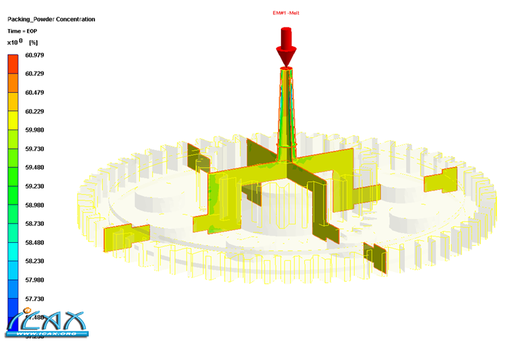 射出成型最大的优势是可以大量生产复杂的几何产品,因各种设计需求,生产过程会运用到不同的塑胶材料。然而,塑胶材料无法满足全部的设计需求,举例来说,塑胶就无法完全取代铁的特性。粉末射出成型(PIM)为一独特制程解决方案,因为能满足形状复杂且体积小的金属/陶瓷精密产品大量生产的需求,目前正快速成长发展。到二零一二年时,全球粉末射出成型产业的产值会以每年成长15-20%速度扩张到一亿五千万美金(Powder Injection Molding International),而根据Global Industry Analysts指出,到二零一七年时,产值会高达三亿七千万美金 。 粉末射出成型广泛应用在许多产业上,其中陶瓷粉末射出成型主要应用在美国的医药和医疗市场;而在亚洲,金属粉末射出成型则多半应用在消费性电子产品和资讯科技方面。 一般而言,粉末射出成型制程涵盖四个部分:1) 复合金属和陶瓷粉末与高分子混合(又称结合剂)来取得致密均匀的成型原料 2)成型原料经过射出后形成生胚 3) 去除结合剂之后,产生棕胚 4) 烧结剩下粉末结构至成品雏型。 然而在射出成型阶段,均匀的成型原料在注入模穴的过程中,却充斥著许多亟待解决的技术挑战。经烧结后的成品缺陷往往是始于成型过程,例如:浇口残痕、顶针痕以及分型线…等等,而这些缺陷很难在脱脂和烧结过程中去除。成型原料的选择及模穴充填的粉末密度/浓度分布,更是会间接影响烧结阶段产生收缩情形,进而引起表面瑕疵、内部结构缺陷、翘曲以及裂痕等问题。 Moldex3D最新的粉末射出成型(PIM)解决方案,反映出产业对于品质要求越来越高。Moldex3D PIM 可以协助检视充填阶段粉末密度的变化,如以下图一及图二所示。此外,Moldex3D 可以提供工具协助评估成型条件,以降低产品在射出成型制程中可能发生的缺陷。除了Moldex3D PIM模拟解决方案之外,Moldex3D材料实验室具备全方位塑胶材料检测能力,提供粉末射出成型制程一个完整性解决方案。 图一 Moldex3D呈现不同充填阶段的粉末密度分布情形 图二 Moldex3D呈现成品内的粉末密度 |