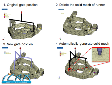 高质量网格是使产品获得精准模流分析结果的首要前提。然而,在高质量网格的背后,往往却是庞大的时间和人力成本支出。有鉴于产品质量要求提升和上市时程缩短,Moldex3D R12提供全新网格前处理模块– Designer BLM (Boundary Layer Mesh),迅速精确的效能可帮助进阶使用者快速建立具含有边界层的高质量网格模型。而原本的Moldex3D eDesign用户也可藉由升级,体验边界层网格带来的进阶效能。边界层网格可以确切掌握近模穴区域显著的温度与压力变化分布,让使用者可以精确黏滞生热与翘曲问题。 在Designer BLM汇入模型后,即可检查原始产品几何可能会发生的缺陷,如:自由边、破面…等。以往只能在CAD软件中,逐一人工修补这些缺陷,既麻烦又费时;如今透过Designer BLM的CADdoctor即可自动完成缺陷检查并修补,甚至能进一步达成模型简化,如下图范例中可以自动移除fillet结构。 设计模具时,经常使用的设计变更方式之一是调整浇口位置。对使用者而言,每修改一次浇口位置就需要重新建立网格模型,相当耗时费力。透过Moldex3D R12 Designer BLM的边界层网格自动建立功能,产品模型的模穴实体网格可以获得保存,只需针对新的浇口位置进行局部网格重建,既可保有网格质量又能提升模具设计速度,实为产品开发的一大利器! *请注意: Designer BLM Mode (Beta) 只适用Moldex3D Advanced Package |