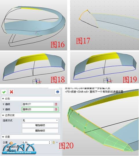 吸尘器是很常见的家用电器,对许多刚学习三维CAD设计的朋友来说,可以作为练习曲面建模的入门素材。因此,今天跟大家分享的,就是由中望3D的技术粉丝李工编制的吸尘器三维CAD速成教程(上)——主体的曲面建模部分,其它零部件的三维CAD教程,也会陆续推出,吸尘器的三维CAD图纸也免费提供下载(//www.zwcad.com/community/thread-13004-1-1.html)。接下来就来看看吸尘器的主体部分是怎么设计出来的吧! 1. 在XZ面插入草图,绘制图1所示的轮廓,在YZ面绘制图2所示的草图,在XY面插入草图,点击参考曲线的曲线相交,过参考点绘制图3所示的两条弧线,点击驱动线放样,驱动曲线为图2左侧曲线,轮廓为图3的上侧曲线,如图4,形成的曲面命名为曲面1,同理,放样另2条曲线,图5,曲面命名为曲面2。 2. 点击线框--投影到面,曲线选择图6所示的部分,面选择曲面1,同理,将图7所示的曲线投影到曲面2,点击曲面--直纹面,将投影后的两条曲线连成面,如图8。在XZ面插入草图,参考曲线如图9所示的红色虚线,绘制弧线连接虚线的两端,将此弧线投影到曲面1,如图10所示。 3. 在XZ面插入草图,将图11所示的红线部分设置为参考曲线,将参考曲线的下面部分转化成红色实线,将剩余曲线向外偏移一定距离,然后用直线将两部分连接。在YZ面绘制图12所示的曲线,在XY面绘制图13所示的曲面(此曲线过参考点),用驱动线放样将两条曲线放样成曲面,命名为曲面3,如图14所示。将图11绘制的图形投影到曲面3,如图15所示。 4. 点击曲面--直纹面,将图16所示的两条曲线连成曲面,在XY面插图草图1,点击参考曲线的曲线相交,设置好参考点,用弧线连接两个参考点,如图17所示。按照图18所示将曲线设置成曲线列表1,同理将图19所示的下部曲线设置成曲线列表2,点击曲面--U/V曲面,U曲线为曲线列表1、2,V曲线为草图1,如图20。 5. 点击曲面--面偏移,将曲面1向下偏移一定距离,命名为曲面4,如图21。在XZ面插入草图2,将图22所示的红色虚线设置成参考曲线,并将其向内偏移一定距离,然后将其转化成实线。点击曲面--曲线修剪,面选择曲面4,曲线选择草图2,注意保留面选择中间部分,如图23,效果如图24,点击曲面--直纹面,按照图25所示修补曲面。 |