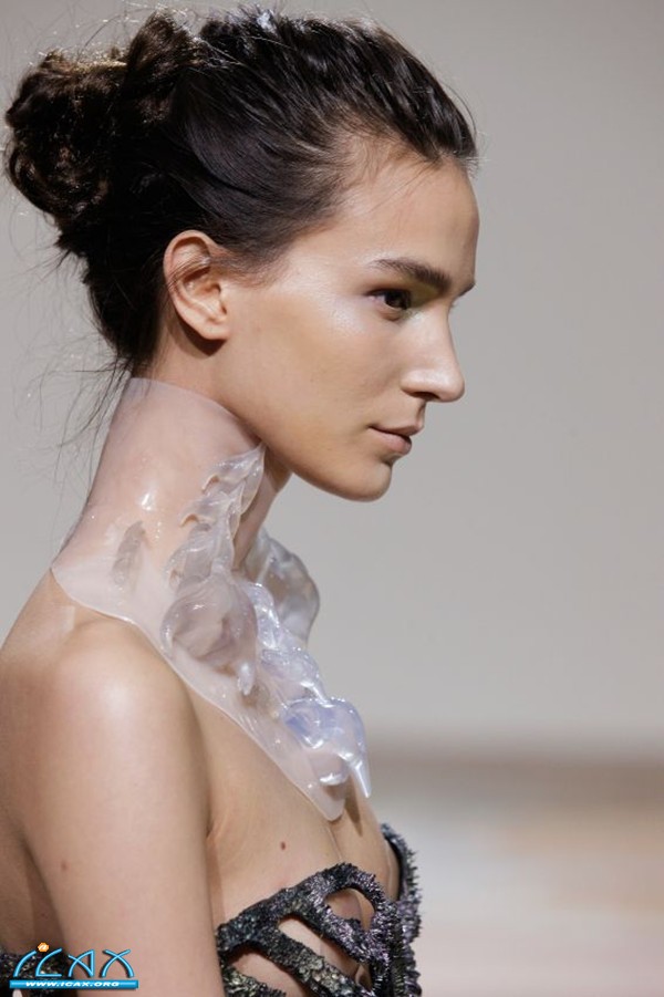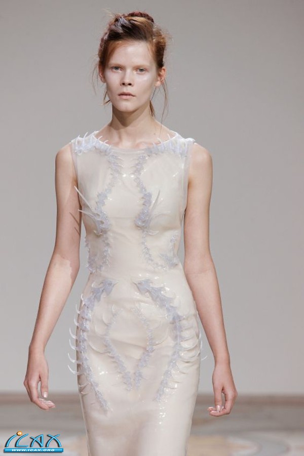 images此前我们也见过一些3D打印的鞋,但过分粗糙,被认定只是玩具。现在,3D打印鞋履已经登上了时装买庙堂——巴黎时装周。2013/2014高级女装秋冬时装秀场上,荷兰80后年轻设计师艾里斯·范·荷本展现了一组运用3D打印和激光切割等高新技术设计制作的作品。 在服装设计中,3D打印技术可以被用在那些漂亮并且独具功能的部分,为传统技艺增加价值。这次3D打印技术支持来源于Stratasys。 图一:这条黑色短裙独特复杂的蕾丝状纹理必须采用Mammoth立体技术光固化技术(Mammoth Stereolithography machines)制作。参与设计的建筑师(没错,真是建筑师)Koerner说:“对计算机、3D打印以及新材料相结合的探索,给服装带来了新的吸引力和神秘感,也给时装界带来了无缝成衣的诸多可能性。” 图二:这条连衣裙是由很多通过3D打印的透明“布片”手工拼接而成。 图三:这条黑色斗篷裙是设计师和Stratasys 及领导MIT的Media Lab的美国设计师 Neri Oxman共同合作完成的。Stratasys公司采用了多材料3D打印技术来满足裙子和斗篷中对软硬质材料的不同需求。Oxman教授说:“3D打印技术能随时调整材料软硬度和弹性的优点启发了我们去为身体设计一款类似活动的铠甲一般的“第二层肌肤”。” 图四:模特脖子上的“项链”一看就是出自3D打印的手笔。 图五:这款鞋子灵感源自树根,打印机的高分辨率使复杂的几何形状与设计融为一体。只是……这鞋子好看吗?对于有密集恐惧的人来说恐怕是一种压迫。看在3D打印的面子上,放两张图。 3D打印或者可以给传统的服装产业加入一些新元素,某国际眼镜业大亨也说3D打印技术将加速眼镜业生产的建模进程。期待更多碰撞的火花。