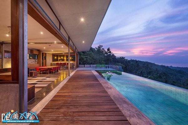 在自己心目中的度假圣地拥有一套霸气侧漏的度假房用来给节假日或者周末的自己放松和休闲一直是许许多多人的梦想,当然能实现这样梦想的人都是寥寥无几。今天小编就来分享其中一个幸运儿在苏梅岛拥有的一处度假房家居设计案例,一起来过过眼瘾吧。 这栋房子的户主是摄影师 Marc Gerritsen,他是一位拍摄过许多建筑大片并广受好评的优秀摄影师。最近他在泰国苏梅岛为自己建造了一栋度假屋并自己给它命名为 The Naked House。建造这栋房屋的主要目的是来适应他未来在东南亚繁忙的工作,用来给自己放松和休息。 第一眼看过去就觉得室内异常的豪华不是吗?一个景色非常棒的观景阳台,采用全镜面门窗,在室内可以完美的将户外的美景一览无余,也极大的扩大了室内的视觉面积。户主还奢侈的配了一个浴池,在这里泡澡真是想想都很兴奋啊。 仅仅一处泡池对于户主来说是不够的,他还专门设计了一个户外泡池。我就不说这泡池的位置是已经可以说是深入树林中,单看泡池配备了多少配件就可以看出来有多享受。 在室外泡池仅仅几步之隔的就是卧室。设计师特意把卧室设计成一个单独的屋子。当然,得益于玻璃门与窗户的大面积运用,这个卧室的风景一边独好。卧室里其实非常简单,但是每一处都做的异常到位,比如那张大大的床。 仅仅只有泡池那是远远不够的,户主在室外的观景长廊外还做了一个室外游泳池。在这个泳池里游泳,欣赏着触手可及的山林美景,遥望着远处的大海,一定会陶醉其中。 到了晚上,在灯光和晚霞的映衬下,屋子里更是风景这边独好。都说国人的梦想都是从有了钱开始,小编现在已经是口水流干,羡慕嫉妒恨啊!