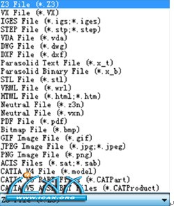 第三,中望3D 2014在数据输出方面也有了较大加强,以往的版本在数据输出方面仅能以第三方格式进行交互,如STP、IGES等,2014版可以直接另存为CATIA、ACIS数据格式,这为一些企业,特别是汽车行业的企业,带来了更大的工作便利。以下是中望3D另存格式情况: