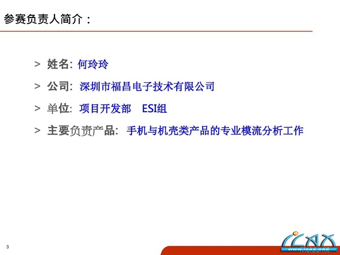 姓名: 何玲玲 公司: 深圳市福昌电子技术有限公司 单位: 项目开发部 ESI组 主要负责产品: 手机与机壳类产品的专业模流分析工作 中国国家级高新技术企业—深圳福昌电子技术有限公司是一家集精密塑胶模具制造、3C(通讯、消费性电子、电脑)和注塑产品开发设计制造为一体,来源于中国本土并走向世界的一流代工和生产厂商。公司成为全球最大的电信设备制造商—华为技术有限公司(华为)、在香港、深圳两地上市的中国最大的通信设备上市公司—中兴通讯股份有限公司(中兴通讯)、在东京证券交易所、名古屋证券交易所和大阪证券交易所上市的全球办公用品主要厂商—日本兄弟株式会社、美国哈曼国际工业(NYSE:HAR)和日本夏普的合作伙伴及中国移动(China Mobile)、中国电信(China Telecom)、英国电信(BT)、沃达丰(Wodafone)、美国电话电报公司(AT&T)、德国电信(DETECON)的指定服务供应商。 公司多年来致力于技术创新,不断提升精密模具技术、表面处理技术、微电机技术、环保制程技术等。集团以人为本,技术中心研发管理制度完善,一贯尊重保护知识产权,并在履行企业社会责任中致力于在节能、减排、绿化、循环等环境保护方面竭尽全力推动。 |