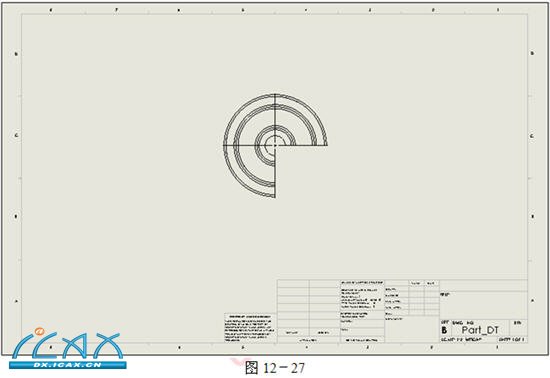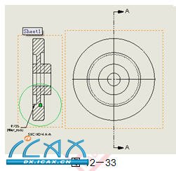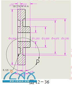 利用已有的系列零件设计表的操作步骤 步骤1 打开零件Part_DT 零件Part_DT将用来说明如何利用已有的系列零件设计表。 该零件包含旋转和拉伸特征。 步骤2 改变尺寸名称 使用属性,将一些关键的尺寸名称改成有意义的名称。如图12-21所示。只有那些在系列零件设计表中出现的名称需要被修改。 如果用户使用了默认的名称,可以在系列零件设计表中添加注释,进一步描述这些尺寸。 步骤3 插入系列零件设计表到零件中 单击【系列零件设计表】 ,或者从下拉菜单中选择【插入】/【系列零件设计表】。 如图12-22所示,设置【源】选项组。 选择【来自文件】,勾选【链接到文件】复先框,单击【浏览】,选择外部文件Part_DT.xls,单击【确定】。 步骤4 显示系列零件设计表 系列零件设计表的表格链接到了零件,单击空白图形区域将关闭系列零件设计表。 在本例中,已有的系列零件设计表与零件名称相同,都是Part_DT,如图12-23所示。 步骤5 成功创建配置 如果系列零件设计表能够成功创建配置,会出现一个列有生成配置名称的提示框。 单击【确定】 步骤6 访问ConfigurationManager 单击ConfigurationManager附签,并用【显示配置】命令显示新生成的配置。 步骤7 删除配置 本例中,要删除Default配置,则它不能处于激活状态。删除Default配置后,激活其他的配置。 步骤8 保存零件 当零件被保存时,系统会弹出一个消息框表明系列零件设计表也被保存。 步骤9 查看建立的配置 该零件创建了37个配置,其中的6个配置如图12-24所示。配置Cutaway是唯一一个没有压缩的特征。保存配置但不关闭该软件。 创建工程图的操作步骤 步骤1 打开零件 打开零件Part_DT,如图12-25所示。 步骤2 设置图纸 将光标置于图纸的空白处,单击右键,从快捷菜单中选择【属性】命令,设置【标准图纸大小】为B-横向,【比例】为1:2,清除【显示图纸格式】复选框,单击【确定】,如图12-26所示。 步骤3 改变视图比例 改变视图比例将影响除了使用自定义比例之外的所有视图的显示比例,如图12-27所示。 步骤4 修改配置 单击工程图,从【模型视图】PropertyManager中选择【更多属性】命令。 在【配置性息】选项组中单击【使用命名的配置】,并选择w7-225配置,如图12-28所示。修改结果,如图19-29所示。 步骤5 隐藏相切连线 右键单击工程图,从快捷菜单中选择【切边】/【切边不可见】,结果如图12-30所示。 步骤6 选择剖面视图工具 单击【剖面视图】 。在上视图中,绘制一条穿过零件圆心的竖直线。使用反馈将直线与穿过圆心的轴对齐。这条直线应该延伸到整个零件中,如图12-31所示。 步骤7 放置剖面视图 向左移动光标,单击鼠标放置剖面视图 所创建的剖面视图和源视图对齐,并在视图上面给出一个剖面视图标记“A-A”,如图12-32所示。剖面视图会自动创建剖面线,剖面线的类型来源于零件文档中【工具】/【选项】/【系统选项】/【工程图】/【区域剖面线/填充】下的设置。 如果用户为零件指定了【材料】,系统将使用材料的剖面线。 步骤8 绘制局部视图草图 单击【局部视图】,在所创建的剖面视图上绘制如图12-33所示的圆。 使用反馈将圆心定位于一个端点上,然后手动圆的直径,使圆包含零件下部。 步骤9 放置局部视图 单击左键放置局部视图,设置局部视图状态为【隐藏钱移除】,如图12-34所示。 步骤10 插入模型项目 可以添加模型项目到所有视图中,包括选中的视图或者视图中选中的特征。 选择剖面视图,单击【插入】/【模型项目】。如图12-35所示,设置相应选项。 设置【来源】为【整个模型】,选择剖面视图为【目标视图】。 单击【确定】。 步骤11 查看剖面视图中的尺寸 所有适用的尺寸将全部被添加到局部视图中,如图12-36所示。 步骤12 删除尺寸 在工程图中删除的尺寸,不会从模型中删除。 删除表示零件深度的尺寸,如图12-37所示。 |
