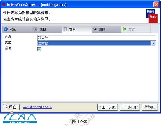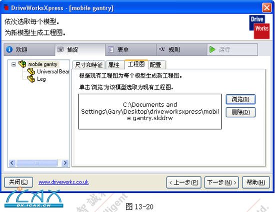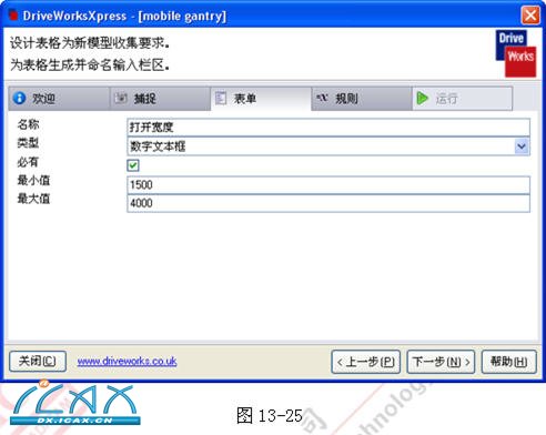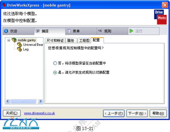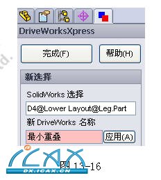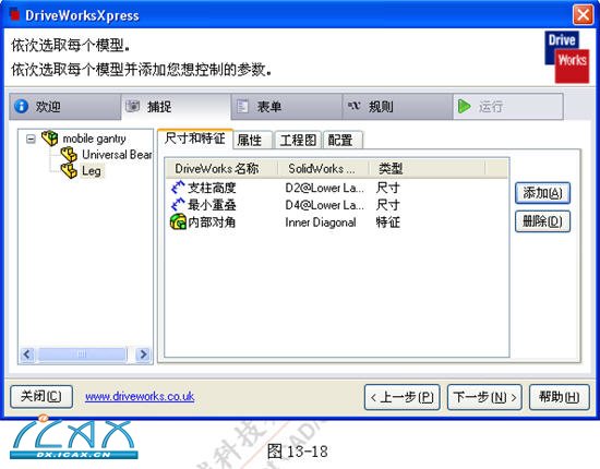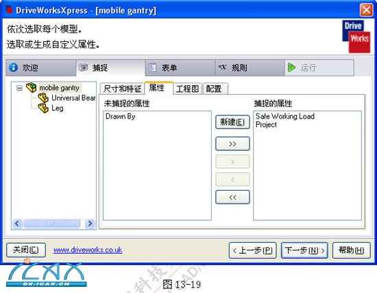 步骤11 添加支柱零件 从【尺寸和特征】选项卡,选取 Leg,然后单击【添加】,如图13-13所示。 步骤12 显示、选择尺寸并应用 在 FeatureManager 中双击 Lower Layout 草图以显示支柱高度和最小重叠尺寸,如图13-14所示。单击支柱高度尺寸(3000)。 出现在 SOLIDWORKS 选择中(DriveWorksXpress 选项卡 )。新 DriveWorks 名称中键入支柱高度并单击应用。如图13-15所示。 要想控制承受载荷的能力,选取测量支柱上端和下端之间重叠的尺寸。 单击最小重叠尺寸(400)。 出现在 SolidWorks 选择中。 在新 DriveWorks 名称中键入最小重叠并单击应用。如图13-16所示。 步骤13 支柱参数 小于 3000 毫米的横梁不要求有支柱内部对角支撑。选取内部对角特征以控制该支撑在所生成的模型中的压缩。 选取 Inner Diagonal 特征(FeatureManager)。在新 DriveWorks 名称中键入【内部对角】并单击应用,如图13-17所示。 单击【应用】,如图13-18所示. 步骤14 选择自定义属性 使用自定义属性在模型变量中控制文件名称和龙门构台尺寸。 从【捕捉】选项卡[/email]选取【属性】选项卡。选取 Mobile Gantry。选取 Project 以使用项目号区分所生成的模型的名称。单击 。选取 Safe Working Load 以使用该变量指定配置和其它所生成的模型信息。单击 。如所图13-19示。 步骤15 选取工程图以生成 将工程图与原有模型关联为每个新模型变量生成修订工程图。选取【捕捉】选项卡 的【工程图】选项卡。选取 Mobile Gantry。 单击浏览,选取 Mobile Gantry.SLDDRW,然后单击打开。如图13-20所示。 步骤16 启用配置 为所生成的模型选取配置。选取横梁,此横梁具有三个配置:500 公斤、1000 公斤、及 1500 公斤,这些为安全工作载荷。 选取【捕捉】选项卡 的【配置】选项卡。选择 Universal Beam。选择是,请允许我生成规则以切换配置。如图13-21所示。单击【下一步】。 步骤17 生成表单 17-1 键入【项目号】 生成表单以指定控制模型变量的输入内容。从表单标签 键入【项目号】作为名称。选择文本框作为【类型】并选中【必有】。 单击【下一步】。如图13-22所示。 17-2 键入【安全工作载荷】 单击【添加】。键入【安全工作载荷】作为名称,然后选取【下拉式】作为类型。选取【必有】,然后在选项中: • 键入 500 Kg 然后按 Enter。 • 键入 1000 Kg 然后按 Enter。 • 键入 1500 Kg。如图13-23所示。 17-3 键入【打开高度】 单击下一步,然后单击【添加】。键入【打开高度】作为名称,然后选取【增量按钮】作为类型。键入 1500 作为最小值、2500 作为最大值、50 作为增量。如图13-24所示。 17-4 键入【打开宽度】单击下一步,然后单击【添加】。键入【打开宽度】作为名称,选取数字【文本框】作为类型,然后选取【必有】。键入 1500 作为最小值,4000 作为最大值。如图13-25所示。 单击【下一步】。单击【测试】查看并测试样本表单。如图13-26所示。 |