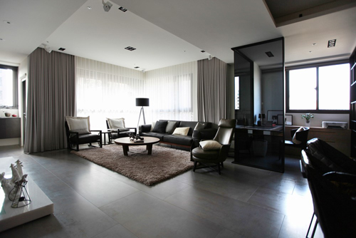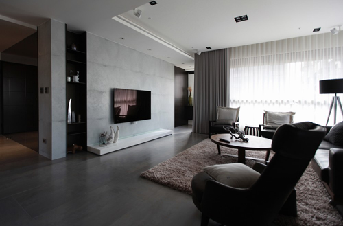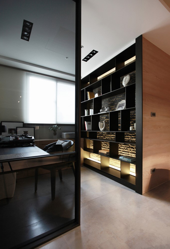 现在城市里有许多二手房,由于新的主人不喜欢原先的装修而委托设计师改造,今天小编要分享的也是这么一个案例。在这个被翻新的屋子中,人文禅风以一种静谧的风采呈现。设计师刻意设计成的冷色系仿水泥砖电视主墙与餐厅部分则走以钢刷木皮的暖度铺陈,冷暖两种完全不同的风格形成了鲜明的对比,视觉效果强烈。并且设计师通过合理的空间布局让空间有了多元的机能运用。 电视背景墙没有太多修饰,看上去就像是房屋一开始就建好的水泥墙一般,彻彻底底原汁原味的感觉。当然,这面墙不可能是原始的水泥墙,设计师经过了精心的抛光和重新涂上了冷色调的涂料,让小编看着就感受到了一丝凉意,这在夏天应该是蛮不错的效果。 设计师并没有推翻这栋屋子的所有设计,他保留下来了达到采光最大值的设计手法——密密麻麻的窗户。设计师充分利用了多扇落地大窗的优势,让光影自然洒入于空间中创造流动性的呼吸感。同时也让原本冰冷的客厅让人觉得充满了温暖的阳光。 在餐厅则是和客厅截然不同的感觉,如果说客厅是冷色调那么餐厅就是暖色调的代表。这个餐厅看上去不仅高档典雅,实际上它还非常的使用,使用大片的镀钛铁板装饰墙面营造色彩,而且后方还藏有一储物空间,色彩元素带动人文质感表现餐厅空间,是一个实用和感官结合的绝佳范例。 那么餐厅墙面之后空出来的收纳空间是干嘛用的呢?答案就让小编来告诉你吧,设计师把挪用的空间配置成了一个书房区块。在书房中,摆放L型的大桌面设计提供使用方便性,同时再墙面上布满了密密麻麻的展示柜,既然提高的收纳空间又带来了展示自己收藏品的地方。 卧室是一个变化很少的地方,设计师遵从了不变更格局这个前提,但依旧做出了一些改变。设计师重新布置了床头,主卧房内透过绷布做出床头定位,这样让人感觉淡雅之中有了主景之分,更加符合整个屋子人文气息的定位。