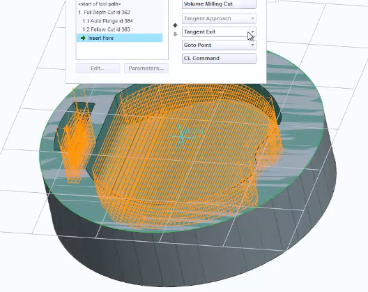 视频简介 “体积块铣削”(Volume Milling) 的新用户界面已实现现代化,其中包括标准的PTC Creo 功能区。 用户界面位置:单击“铣削”(Mill) ▶ “粗加工”(Roughing) ▶ “体积块粗加 工”(Volume Rough)。 “体积块铣削”(Volume Milling) 用户界面已实现现代化。它与“粗加 工”(Roughing) 一起位于“粗加工”(Roughing) 组中。单击“铣削”(Mill) ▶ “粗加 工”(Roughing) ▶ “体积块粗加工”(Volume Rough) 来查看新的“体积块铣 削”(Volume Milling) 用户界面,并体验简化的工作流。在此示例中,可选择 参考“铣削窗口”(Mill Window),然后复制现有 NC 序列的参数以获得可开始 进行处理的刀具路径。要获得视觉反馈并预览您正在定义的刀具路径,请单 击 。您可从“刀具运动”(Tool Motions) 访问一组命令来准确地定义进刀和 退刀,或添加 CL 命令。要编辑切削,请单击“刀具运动”(Tool Motions) 选择 切削,然后单击“编辑”(Edit) 打开“体积块铣削”(Volume Milling Cut) 对话框。 您可以在此对话框中执行一些操作,例如更改不同区域的加工顺序。 通常,在创建体积块铣削刀具路径时会扫描几何、识别区域、定义刀具轨迹 以及应用进刀和退刀操作。在“体积块铣削”(Volume Milling Cut) 对话框中, 单击“区域”(Regions) ▶ “显示区域”(Show Regions),然后单击区域编号来查看在“图形”窗口中突出显示的选定区域。单击向上和向下箭头来更改各区域 的切削顺序。单击“预览”(Preview) ▶ “CL 数据”(CL Data) 来查看整个刀具路 径的“CL 数据”(CL Data)。单击“CL 数据”(CL Data) 中的线,刀具对应的位置 即会突出显示在“图形”窗口中。 |