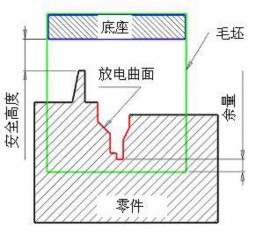 第三步-电极毛坯&电极坐标系 1.打断几何体 在 Cimatron E 的电极设计中,可以设置毛坯线框的颜色。这些颜色可以作为 NC 加工 的几何标准,允许在 NC 环境中进行自动铣削。 在预设置的电极模块下的电极颜色中,设置如下毛坯颜色参数: 这种基座中包含一个小的台阶,这使得测量电极的 NC 偏置值变的更容易。由于这个台 阶很容易进行检测,可以使用检测工具来确定是否给了正确的偏置值。 为毛坯设置以下的参数: 注意: 点击扩展按钮,此时依然可以编辑毛坯的外形尺寸; 毛坯中毛坯高度、底座高度、避空高度(安全高度)和余量的含义参照如下图示: 上图所示的四个参数由于存在嵌套关系,故确定了其中的三个,另外一个也就自动确认。 此自动确认的参数可以从自由值选项上选择控制。如本教程选则自由值:安全高度。 注意: 斜角按默认的偏好设定参数创建出来了,也就是最接近参考坐标系的那个角。有关底座 的标记规则可在预设置的电极选项中设置: |
