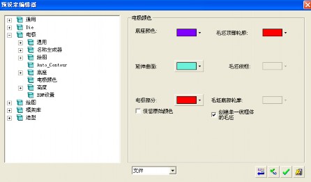 作为分类选择的对象,这样很容易在 NC 中实现加工自动化。在电极/颜色设置编辑器中, 设置如下电极毛坯的颜色。