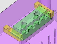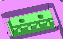 在特征向导中进入第二选项 – “修改添加零 件坐标系”(Change the UCS of the added part) 选择相应坐标系 在特征向导中进入第一可选项– “偏移和旋转”(Offset and Rotation) 修改“增量 Y”( Delta Y )= -10 点击“确定”( OK) 在另一侧重复添加操作。 image 激活公模板 CorePlate 隐藏其它所有零件 在导向口袋底面上创建草图 使用“移除>>拉伸>>穿透” ( Remove >> Extrude >> Through ), 创建口袋。 显示滑块本体零件 Slider Body part 在 Slider Body 零件底面创建草图 使用“移除>>拉伸>>穿透”( Remove >> Extrude >> Through ),创建口袋 8. 激活动模侧子装配 Movable Side 显示导向板 在“快速模具设计向导” (Xelerated MoldDesign)中打 开“添加模具部件>>螺钉&螺 栓”( Add Mold Component >> Screws & Bolts) 选择 Screws & Bolts Cup Screw CB Socket Head Cup Screw 6 – 20 选择其中一个导向板的顶面 使用工具“添加几何”( Add Geometry ),添加四个圆 孔。 |