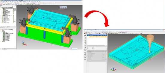 CimatronE 在治具设计中的应用 1.治具设计的概念 1.1 治具设计 沿于台湾的叫法,在大陆我们一般工装夹具与检具设计。 (1)夹治具(Fixture Jig)的定义:一般而言,凡是在机械制造过程中,使任何加工程序能 加速、方便辅助装置工具,均可称为夹具(Fixture)。广义的夹具可包括机器夹具,冲压夹 具,热处理夹具,焊接夹具,装配夹具等等。 image (2)治具又分工装治具,检测治具两种,前者用于机械加工、焊接加工、装配等工艺便于 加工、满足精度的需求而设计的一种工装夹具;后者为检测使用,因为有些机械尺寸不便于 测量,因其形状复杂,我们只好设计专门的检测块或者检测用的针对某一种产品而设计检具。 (图 1.治具) 1.2 治具只要特点 (1)设计多样性:由于对产品处理工艺多样化,如机加工、表面喷涂、检测、胶合等工艺处 理,因为需要的治具种类相对繁多,零配件复杂多样化; 型相似,有仿形也有避让。 1.3 治具设计对软件的要求 (1)方便快捷的设计处理能力;(2)快速的仿形避让处理;(3)丰富的零配件库和自定义 标准件和非标件的能力;(4)高效处理设计变更的能力。 2.传统治具设计制造流程 2.1 传统治具设计制造流程 2.2 传统治具设计制造流程分析 从上述流程图我们可以清晰的看到传统治具设计制造的整个流程,在这个过程中我们可以看 到使用到的软件就涉及多款软件,所以对工程师的要求和能力培养成本就很高,并且多款软 件之间的数据传输转换可能会造成一定的数据丢失和损坏,以致最终的制造不合格;另外, 在 2D 软件中绘制的避让区域图导入 3D 软件以后,在 2D 图中创建的那些避让区辅助图如 果保存着肯定会增加材料管理工作量,不便于管理。 3.CimatronE 治具全 3D 设计制造流程 3.1CimatronE 治具全 3D 设计制造流程 以下我们通过一个案例来介绍 CimatronE 全 3D 治具设计。 (1).在准备做支撑块设计之前先根据产品处理工艺的不同需求,可在 CimatronE 软件中设 计好相应的治具架结构,并且可以将这些治具架客自化成公司的标准件进行使用,这样可以 (图 2.CimatronE 设计治具架) (2).根据不同产品处理工艺,调用现成合适的治具架结构(本案例调用上升式治具架结构) (图 3.调入治具架) (3).调入需要做支撑块设计的产品至合适的位置: (图 4.调入产品图) (4).由于针对的产品大小形状都不统一,所以加载产品以后需要根据不同的产品尺寸再调整 整套治具架的相关尺寸,在 CimatronE 软件中采用专业的装配尺寸对话框,可以在三维状 态下调整合适的结构尺寸: (图 5.调整整套治具架尺寸) (5).支撑块的设计,在传统治具设计过程中支撑块采用的是压板和支撑块在一起进行设计, 当进行支撑块的设计的时候不方便观察上压板是否干涉支撑块的相关位置,同理做压板设计 的时候也不方便观察支撑块是否干涉,为了避免此问题在 CimatronE 全 3D 治具设计中出 现,我们推荐采用快速分模将产品快速的分出上下两个部分,分别进行上压板和支撑块的设 计,这样就可以分别隐藏上下面进行压板和支撑块的设计: (图 6.分出上下面) (6).在创建支撑块主体之前先创建让位槽,传统创建让位区域采用在 2D 环境下手动绘制草 图,在 2D 环境下创建让位区域对设计师的经验要求非常高,且出错率较高,当导入 3D 软 件中设计好支撑块主体以后再需要修改让位区域就非常麻烦,因为尺寸参数不能关联。 CimatronE 全 3D 设计采用的是利用让位标准件和随形线框功能,并且参数可以相互关联 便于后期的修改: (图 7.设计让位) (7).创建支撑块主体,结合 CimatronE 全 3D 造型设计以及仿形切割实体功能,快速创建 支撑块主体: (图 8.设计支撑块) (8).在完成让位槽和支撑块主体设计之后,就需要添加相应的组件完成整套治具的设计,像 汽缸、电子眼、五通、加热棒、轴承套等均可在 CimatronE 软件中定义为标准件或非标件, 然后在治具装配设计的时候只需要加载即可。 (图 9.自定义标准件) 另外,CimatronE 软件自带多大 30 多种标准件,通用的螺栓螺帽均可直接调取使用: (图 10.调入自带标准件) (9).所需要的标准件、客自化件、支撑块主体、压板等部件都设计完成并组装完整以后,为 了保证每个装配件之间不发生干涉,CimatronE 软件支持每个部件之间的干涉检查分析, 可以快速直观的看到每个部件之间的干涉且可以显示局部细节情况: (图 11.干涉检查分析) 找到干涉区域,并可快速的修改。 (10).在完成以上的所有操作流程并完成治具设计,后续出现产品的数据设変的时候, CimatronE 全 3D 设计模式采用专业的设変处理功能,减少因为传统 3D 软件全参数设计的 参数关联导致变更的时候每个部件之间关联性的变化,而 CimatronE 软件采用的是全参和 无参相结合的设计模式,方便快捷的做到数据的设计变更: (图 12.设计变更) (11).完成整套治具设计: (图 13.整套治具装配) 4.CAM 制造 为了使得企业在治具设计制造的过程中实现由设计到加工一体化操作,CimatronE 软 件可以在治具设计完成以后将相应的各个零配件一键切换到 NC 模式下,进行编程,相同软 件之间的操作可以极大的减少数据转换造成的数据错误: (图 14.CAD-CAM 转换) 5.小结 由于传统治具设计要完成一整套治具设计需要涉及多款软件,首先对产品数据本身的多 次转换势必会造成部分数据错误,其次,涉及到多款软件也会造成企业人力资源成本的提升; CimatronE 提出采用全 3D 治具设计,将冗繁的 2D 的工作整合到