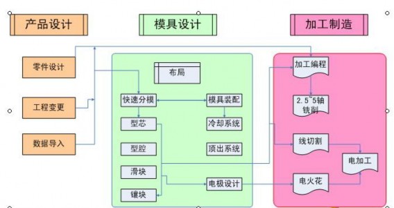 CimatronE’s Total Solution On the Mould and Die Manufacturing CimatronE 是以色列 Cimatron 公司为制造业用户提供的优秀的 CAD/CAM 软件,包括模具设计、制造解决方案和高端产品设计、制 造解决方案。本文重点介绍 CimatronE 在模具设计、制造领域的专业 解决方案,谨供广大模具制造者参考。 Abstract: The article describes CimatronE software that provides solution on the Mould and Die Manufacturing and High End Product Design and Manufacture, with special attention to the total solution of CimatronE on the Mould and Die Manufacturing。 一, 概述 模具是工业生产中使用极为广泛的重要工艺装备。采用模具 生产制品及零件,具有生产效率高,节约原材料,成本低廉,保证 质量等一系列优点,是现代工业生产的重要手段和主要发展方向。 许多现代工业的发展和技术水平的提高,在很大程度上取决于模具 工业的发展水平。模具工业的水平和发展状况已被认为是衡量一个 国家工业水平的重要标志之一。可见模具设计、制造在工业发展中 的重要地位。 模具生产全过程是指根据制品零件的形状、尺寸要求,制造出 结构合理、寿命较长、精度较高,能批量生产出合格的相应零件制 品的模具的过程。主要包括模具设计、模具制造工艺规程制定、模 具原材料的运输和保存、生产的准备工作、模具毛坯制造、模具零 部件的加工和热处理、模具的装配、试模与调整及模具包装等内 容。从模具生产的全过程看,模具设计、制造贯穿于全过程的始 终,模具设计、制造的技术手段直接影响模具设计、制造过程,进而影响模具生产的全过程。本篇重点阐述 CAD/CAM 软件在模具设 计、制造中的重要地位。 二,模具制造者最关注的重要因素 在当今激烈的市场竞争中,凡是设计到用模具生产的产品,面 市的周期要求都非常短,而且不能靠降低质量来争取时间,为了获 取一定的经济利润,降低模具成本也是模具制造者非常关注的,所 以模具的交付时间、模具制造成本、模具质量便成了模具制造者关 注的重中之重的三个因素,这三个因素最直接地影响模具企业的发 展。如何缩短交付时间,降低模具成本,提高模具质量是每个模具 企业不断追求的目标。要缩短模具交付时间,提高模具质量就要在 模具设计、制造过程中采用先进的技术手段,包括优秀的 CAD/CAM软件,引进先进的加工设备,不断提高模具标准化程度,强化模具 企业的管理水平。 三, CimatronE 软件概述及在模具制造业的应用 如下图 1 所示,CimatronE 为模具行业提供了专业 CAD/CAM 解决方案: 图 1 CimatronE 涵盖了产品设计,数据转换,模具设计,电极设计和 加工,模具零件本身的数控编程,二维图纸生成等模具设计、制造 的全部工具。下面以具体产品的模具设计为例说明 CimatronE 在模具 设计、制造全过程的解决方案。 1, 产品设计 CimatronE 的产品设计功能包括线框造型,曲面造 型,参数化实体造型,而且真正实现高级曲面和参数化 实体的混合造型,强大的曲面编辑、修改功能。强大、 灵活的产品设计功能为模具设计、数控编程的工艺补充 做了充分准备。 2, 数据接口 CimatronE 提供了丰富的,功能强大的数据接口,转 换中保证几何信息的准确性,满足模具设计、制造者接 受上游数据需求,便于和协作单位进行流畅的数据交流。如 PTC,UG,CATIA V4,CATIA V5,SOLIDWORKS等。 3, 3D 模具设计 1)基于曲面的分模理念,容错性强,自动生成内外分模线、内 外分模面,进而生成模具的型芯、型腔、侧滑块、斜顶等模具零部 件,工作效率高,成功率高。 2)拔模角分析功能:分模前对零件进行拔模角分析处理,通过 预设定相应拔模角度,提示颜色来分析产品件关键部位的拔模斜度 情况,并给予不同的颜色提示,便于查找修正,以弥补零件设计过程中对拔模角处理的疏漏。 3)圆角删除功能,实现新的拔模角创建,使分模工作顺利进 行;高级曲面功能,对有问题的面进行快速修复。 4)快速变更功能,确保模具设计者在产品零件没有最后完善前 就可以进行预设计、模具设计,使得整个模具设计的时间提前。更 重要的是适应“擅变”的模具设计工作特点,尽管模具设计变更、修改频繁,用快速变更工具,在模具设计的任何阶段,原始零件模 型发生改变,都会根据变化的形状快速重新生成模具的型芯、行腔 及侧滑块、斜顶等模具零部件。 5)支持并行工程,可以满足模具设计、制造过程中多人分工协 作,在不同空间、地点,同时对模具的各个部件展开工作,提高模 具设计、制造效率,大大缩短模具的交付时间(图 2)。 图 2 6)丰富的标准模架库--Hasco、Dme、Misumi、Futaba、LKM(龙 记)等,其中 Futaba,LKM,Misumi 在国内模具企业广泛应用。模具 标准件库,包括浇注系统,顶出系统,冷却系统,导向系统等,使 得模具机构设计、模具装配变得简单、方便,同时大量的标准模 架、标准件的使用,节约这部分零部件的设计、制造时间,而且便 于模具企业管理的标准化,有利于模具企业的快速发展。 7) 自动生成模具装配图纸,包括模具装配结构尺寸,零件 ID 号,物料清单(BOM),有助于模具材料的提前准备,有助于模具车 间进行实际装配参考。 5,电极设计、加工 在模具制造过程中,模具零件上会有一些较深、窄槽腔,常规 的铣削加工很难实现,需要进行放电加工。这样就涉及到电极的 设计、加工。 1)CimatronE 电极向导自动完成单个电极的设计,方便、快捷 提供了从电极设计、自动提取放电工位
