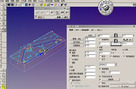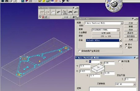 GibbsCAM2.5 轴加工实例 GibbsCAM 功能强大,涵盖了 2-5 轴的铣加工功能,和车铣复合加工功能。 下面对一零件做 2.5 轴线加工的技术讲解,以增进大家对 GibbsCAM 软件 2.5 轴产品加工的了解。 (上图)成型零件效果图 首先建立文档 (可自行作图,也支持外界导入)。本例题采用英寸制 上面对话框:在机器栏对应的是各种不同的加工环境(MDD)。此零件我们采用 3 轴立式加工中心。 下面对话框:设置毛坯,刀具换刀点和安全平面 通过 GibbsCAM 的尺寸分析工具,我们可以确定要使用的刀具尺寸: 打开刀具对话框,定义本次加工所要使用的刀具,分别定义粗铣刀 T1:D1 T2:D0.7,精铣刀 T4:D0.25 和 T5:T 型刀 D1 去除大余量外围毛坯:采用 T1 刀具,GibbsCAM 有一个比较特别的功能,可以根据选取的刀具,通过 划线画出走刀路线。 完成此步骤后,把轮廓策略和刀具拖至工序栏,便会自动弹出对话框,拾取所画走刀路线,点击线上 圆环,确认切削位置。在编程对话框,设置进刀距离 0.1,切深-0.75,Z 步距 0.25,黑色和白色图标分别 可以拖动,白色标记用来确定开始车削位置,黑色标记用来确定结束车削的位置,控制起来相当灵活。 走零件外轮廓:采用 T1 刀具,打开轮廓编程对话框,拾取轮廓线,点击线上外切圆环定义刀具外切, 设置进刀距离 0.1 ,余量 0.015 切深-0.75,Z 步距 0.75。 轮廓精铣:采用 T3 刀具,只需把更换的刀具拖至工序栏,轮廓编程对话框会继承前面的程序参数, 更改余量为 0。 铣键槽:T5 刀具,采用轮廓铣削方式,注意进刀,因为是 T 型刀,要防止过切,切深-0.4,一刀到位。 内腔开粗:T2 刀具,采用粗加工策略,GibbsCAM2.5 轴也是可以继承毛坯的,我们选择使用毛坯,就 会给下刀加工留下可继承的残料。参数设置余量 0.015,切深-0.6,Z 步距 0.18。 内腔残料加工:T4 刀具,采用粗加工策略,此时 GibbsCAM2.5 轴就可继承上次毛坯,只切残料,减少 空刀。参数设置余量 0,切深-0.6,Z 步距 0.18。 GibbsCAM 仿真加工:仿真可以很直接的预览零件加工效果,检查零件是否过切,仿真下拉菜单还有丰 富的仿真辅助功能,比如加工时间,颜色,物体透明,以及加载机床进行更理想的仿真等等。 以上是 GibbsCAM 对一典型线零件的 2.5 轴铣加工,以便使大家了解 GibbsCAM 除车铣复合以外,2.5 轴铣加工同样灵便,以后我们还会依次介绍 3 轴,4 轴和 5 轴的铣加工功能。 |