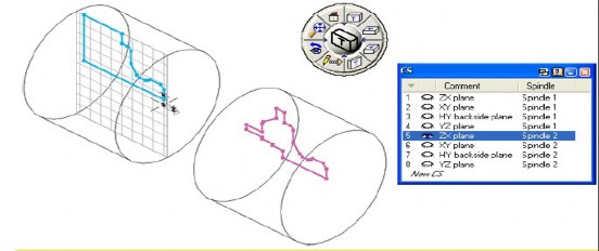 第四章: 多任务车铣复合加工几何创建 设置几何 当处理多主轴零件时,几何应当建立在对应的主轴上。基于安装权限,每一个主轴 都有一个自己的工作坐标系统。为多任务车铣复合加工(MTM)创建几何有多种方法,前提 是这些几何必须被正确地放置在相对应的机床主轴上。方法如下: 1. 现在主轴上创建一个完成的图形,然后复制移动到其它轴上。这就像在车 削中,根据最终外形定义粗加工操作。 2. 在主轴1上建立所有轴上的几何然后再把几何移动到其它轴上。 3. 在主轴上创建你所打算用的外形。 4. 以上方式的结合。 在主轴和副主轴上创建几何 当你在主轴上通过几何定义一个毛坯时,副主轴的计算继承主轴上的毛坯。如图: 工作群组 我们从几何创建教程中,已经认识了工作群组。在工作群组中,可以把几何分组, 储存,同时可以自定义毛坯。例如旋转、拉伸等。当在MTM自定义毛坯时,必须要指定附属 的主轴。回顾车削和铣削教程会获得更多关于设置毛坯尺寸的信息。 坐标系统 如果你已经使用过车铣复合或高级 CS 操作你一定 很熟悉坐标系统。一个坐标系统代表一个几何平面。 不同的操作模块,你将会有不同的坐标系统可以使用。 所有的 MTM 系统至少每个轴有一组坐标系统。 这个坐标系统代表被加零件的加工平面。一些不同 组合默认的坐标系也会如此。实际的坐标系统取决于 你的设备情况。 车和 MTM 每个主轴有 1 个 ZX。 车铣复合 MTM 每个主轴 4 个平面,ZX ,XY 正面,XY 背面和 YZ。 车铣复合, MTM和 高级 CS 每个主轴 4 个平面,ZX, XY 正面,XY 背面,和 YZ 正面可以创建无限制 的额外坐标轴。 1. 主轴 1 2. 主轴 2 几何颜色 几何在当前坐标系统中显示为淡蓝色.几何是可见的,但是在坐标系统中当前激活的坐标 是紫红是。几何在非激活坐标系统下可以编辑和修改但是所有的动作均和当前坐标系统相关 联。 改变坐标系统 移动几何到其它的主轴上可以通过 XYZ 转换或 改变 CS 命令实现。 这是最好的保持 原形状被分配到目标坐标系统中的方法。然而,不像群组,在坐标系统中简单的得到几何仅 仅是开始。几何可能需要在新的目标坐标系中调整,需要移动、镜像/或旋转。在修改操作中 有两个命令允许你很方便移动几何到其它坐标系统中。 这个命令是改变 CS XYZ 和 改变 CS HVD。 虽然类似,却是以不同的方式修改几何。 改变 CS XYZ 这个将改变几何从当前的 CS 到当前激活 CS,例如从 ZX 到 YZ 坐标系统中。这个几 何将保留在相同的 XYZ 位置, 它的位置并没有移动。 改变 CS HVD (Ctrl-\) 这个按钮适用于被选中的几何。选择这个命令将改变 CS 中的几何属性, 并 且会移动几何相对于新坐标系统的原点和 HVD 的标准水平、垂直和深度方向。坐标系统原 点箭头指示显示 H+和 V+ 的方向。同时有一个 +或 – 在零点显示 D+ 的起始。使用改变 CS HVD 命令保证 HVD 的值在新的 CS 系统中。因而如果在 ZX 平面 Z–1, X–1, Y0 的位置 有一个圆,它也在 H–1, V–1, D0 的位置。当移动到 YZ 平面,这个圆的坐标是 Y–1, Z–1, X0 或 者是 H–1, V–1, D0 ,但是圆心不同了。使用这个命令将会改变你当前选择坐标系统中的几何 位置。 注意第一个主视图中显示的的是改变 CS HVD之前的情况,改变之后的情况见第二视图。 在两个坐标系统之间移动几何类似于在两个群组之间移动几何。几何可以从原始坐标系 统中剪切(Ctrl-X), 复制(Ctrl-C) 和粘贴 (Ctrl-V) 到目标坐标系统中。使用这中粘贴的方 法可以在空间中同一点复制几何。一旦几何被粘贴那么改变 CS 命令将会转到当前坐标系统 中。更多关于坐标系统的信息你可以在高级坐标系统手册中找到。 设置两主轴之间的几何 每个主轴的坐标系统定位都是相同的。ZX 是主要的车削平面。所有主轴均以此定位。 几何如何从一个主轴上移动到另一个主轴上? 这将有很多种方法可以做到。下面的方法将详细介绍几何的复制,改变该表几何到目标 轴,镜像和移动几何。虽然这些方法不够智能, 但是很强大。使用这个方法你可以指定目标主 轴原点的特征。 1. 选择复制几何转换(双击 和 Ctrl-D). 2. 选择目标主轴中坐标系统 (代表性的 ZX 平面, 例如 CS 5: ZX 平面 - S2: 主轴 2). 3. 从修改菜单中选择变换 CS (HVD) (Ctrl-\). 4. 从修改菜单中打开镜像按钮, 并镜像几何到 Z0。 1. 主轴 1 2. 主轴 2 5. 从修改菜单中打开转换按钮。放置指针在 Z 值框中, Alt-Click 点击目标轴的 原点.这将取得坐标 Z 的值。 6. 改变坐标原点为负 值。 7. 点击操作。 零件就可以镜像过来。如果几何移动到目标轴上,它将自动的匹配到目标坐标系的零点 深度值.如果零件零点在零件形状的另一端, 你可以选择步骤 4 镜像 Z 值等于-零件长度一半 的值。因此如果几何长度为 40mm, 镜像值为 Z-20。这步可以跳过 5, 6 和 7。 使用零件偏移 零件偏移是公用操作允许你拉伸或缩短零件形状并且可以超出主轴。 当使用零件偏移 将会在新的位置创建新的几何。新的几何依 Z 相同比例偏移。 |