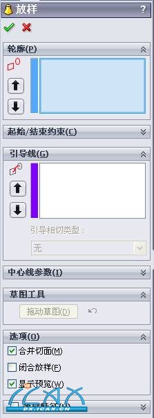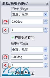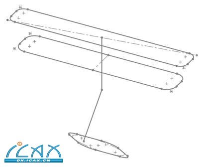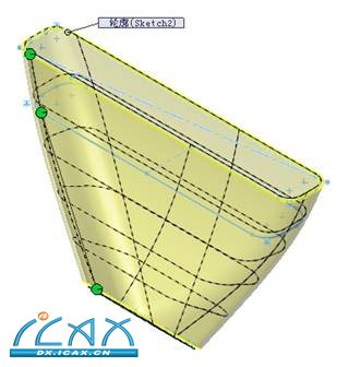 基本放样操作步骤 步骤1 打开零件“Defroster Vent” 该零件包含如图3-1所示的3个轮廓草图 图3-1 步骤2 创建放样 从下拉菜单中选择【插入】/【凸台/基体】/【放样】,或者在特征工具栏中单击“放样凸台/基体” 步骤3 放样PropertyManager 如图3-2所示的propertyManager中单击【轮廓】列表,在图形区域中选择3个草图。选择草图时,应该注意在每个草图中相应实体的大致相同位置上单击草图。 图3-2 步骤4 预览草图 在选择草图时,系统会产生放样的预览,显示草图中哪些顶点将被连接。仔细查看预览,系统会显示创建的放样是否扭曲,同时允许用户仅通过拖动控标来修正扭曲或错误。图形区域中会出现一个柡注来标明所选择的轮廓,如图3-3所示。 图3-3 步骤5 选择薄壁特征 设置【厚度】为0.09in,注意厚度应该添加在轮廓外侧。在【选项】选项组中选择【合并切面】复选框。单击【确定】,创建特征,结果如图3-4所示。 图3-4 步骤6 编辑特征 编辑放样特征的定义,在【选项】选项组中,清除【合并切面】选项,单击【确定】。 与步骤5结果相比较,此时显示了轮廓中直线和圆弧的端点所对应的边,如图4-5所示。 图4-5 步骤7 选择【合并切面】选项 步骤8 编辑特征 编辑放样特征的定义,展开【起始/结束约束】选项组 【默认】选项近似在第一个和最后一个轮廓之间绘制的抛物线。该抛物线中的相切驱动放样曲面,在未指定匹配条件时,所生成的放样曲面更具有可预测性,而且更自然,如图3-6所示。 图3-6 步骤9 垂直轮廓 在【开始约束】和【结束约束】下拉列表框中选择【垂直于轮廓】选项,相切方向箭头如图3-7所示。 如果方向不正确,单击“反向” 图3-7 【起始处相切长度】和【结束处相切长度】默认为1mm,改变相切长度将影响放样的效果。用户可以通过输入数值并单击【应用到所有】来统一修改相切长度,也可以单独地拖动相切方向的箭头。注意放样的预览,如果相切箭头方向不正确,预览结果可能如图3-8所示。单击【确定】 图3-8 步骤10 显示放样结果 如图3-9所示,放样的形状发生了改变,特征开始处和结束处的表面与轮廓草图平面垂直。 图3-9 步骤11 保存并关闭零件 |