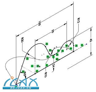 添加【共线】和【重合】几何关系,完全定义草图,如图3-16所示。