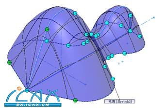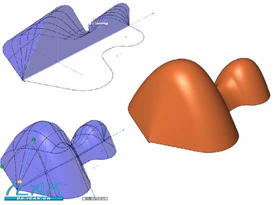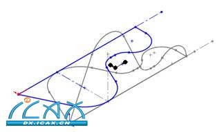 步骤9 插入派生草图 从下拉菜单中选择【插入】/【派生草图】,草图被插入到所选择的平面上,但没有完全定义。 派生草图与草图的复制和粘贴不同,它可以使系统自动进入【编辑草图】状态。同时,在FeatureManager设计树中,派生草图的名字会标识有派生后缀。 步骤10 修改草图 单击“修改草图”,移动光标到黑色原点的符号上,单击右键镜像草图,如图3-18所示。 图3-18 步骤11 拖动草图 向右移动草图,关闭【修改草图】对话框,如图3-19所示。 图3-19 步骤12 完全定义草图 添加和步骤6类似的【共线】和【重合】几何关系,如图3-20所示。 图3-20 步骤13 创建放样 在特征工具栏中单击“放样凸台/基体”,选择【合并切面】复选框。 不用引导线和中心线,使用这三个草图作为轮廓创建放样,如图3-21所示。注意要在相近的对应点上选择这三个草图。 图3-21 步骤14 显示所有接头 单击右键,从快捷菜单中选择【显示所有接头】,查看所有草图端点间的接头,如图3-22所示。 图3-22 步骤15 网格预览 单击右键,从快捷菜单中选择【网格预览】/【网格所有面】,网格面覆盖了放样上色的预览,如图3-23所示。 图3-23 步骤16 保存并关闭零件 |