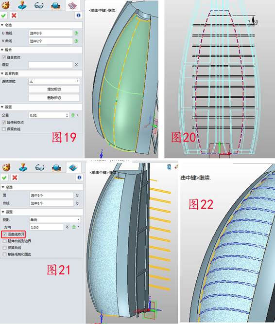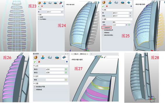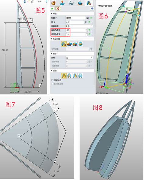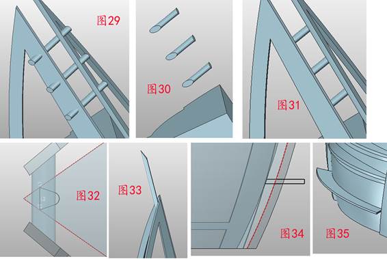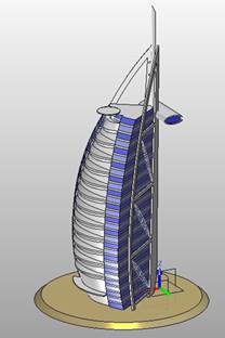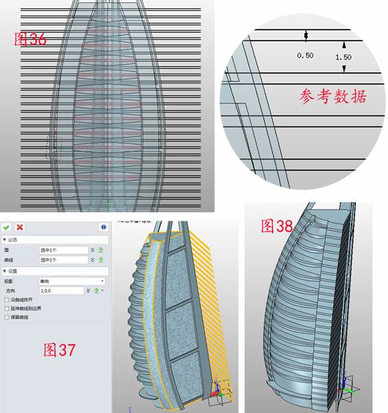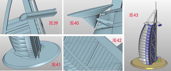 我是一名刚从院校出来工作的设计师,目前服务于一家制造业企业。平时主要用SOLIDWORKS和UG进行产品的建模设计,一次偶然机会接触到客户递交的工程图纸是用国产三维CAD中望3D建模绘制,诧异国产软件中望3D的强大建模功能,完全不逊色solinworks、UG。因此对中望3D进行研究,并对照其自带的“边学边用”的中望3D教程,主要运用草图,拉伸,旋转,面偏移,U/V曲面等功能命令,结果非常快速绘制出迪拜酒店模型,该设计的重点和难点是模型正面的曲面制作,但只要能把握正确的思路,用中望3D2014就能很轻松地完成,下面简单讲解设计过程,分享给各位学弟学妹。 1.首先在XZ面绘制草图1,如图1;将草图1向两侧各旋转40度,如图2;在XY面插入草图2,绘制如图3所示的图形,用拉伸——减运算拉伸草图2,效果如图4。 2.接着在XZ面绘制草图3,如图5;将草图3向两侧各旋转35度,如图6;在XY面插入草图4,绘制如图7所示的图形,用拉伸——减运算拉伸草图4,效果如图8。 3.在模型内槽表面插入草图5,绘制如图9所示的图形;将草图5旋转70度,数据如图10;在相同的位置再次插入草图6,绘制图11所示的图形并旋转,数据如图12。 4.点击曲面——面偏移,把图13所示的面向外偏移一定距离;点击曲面——曲面分割,面选择偏移后的面,分割体选择XZ面,如图14;再次应用曲面分割,面选择偏移并分割后的两个面,分割体选择图15所圈定的面以及其对应的顶面(图16所示);点击线框——边界曲线,提取图17所示的黄色曲线,并将弧面隐藏;点击线框的弧线工具,如图18,用三点方式绘制弧线。在这点上我不得不赞叹中望3D的曲面建模功能真的很快捷方便,大大提升设计师的效率。 5.点击曲面——U/V曲面,如图19所示组弧面;在YZ面插入草图7,绘制图20所示的线段,注意数量和间距,大体差不多即可;点击曲面——曲线分割,面选择弧面,曲线选择草图7如图21,注意在沿曲线炸开前打勾;隐藏多余的弧面,效果如图22。对比其他三维设计软件,中望3D一点不逊色,在U/V曲面上让设计师用得非常得心应手 6.在YZ面插入草图8,绘制一组弧线,如图23,注意位置;点击曲面——炸开,选择图24所示的曲面,将其炸开,目的是分离这个面;点击曲面——曲线分割,面选择分离后的弧面,曲线选择草图8,如图25,注意在沿曲线炸开前打勾;隐藏多余的曲面,如图26;点击曲面——直纹曲面,照图27所示修补曲面,效果如图28。 7.在XZ面插入草图并拉伸出三个圆柱,效果如图29,在XY面插入草图,然后用拉伸的减运算修建三个圆柱,效果如图30、31;同理依据图32的草图拉伸出柱体,并修剪,如图33;在XZ面插入草图9,绘制图34所示的图形,用旋转工具左右各旋转35度,效果图如图35。