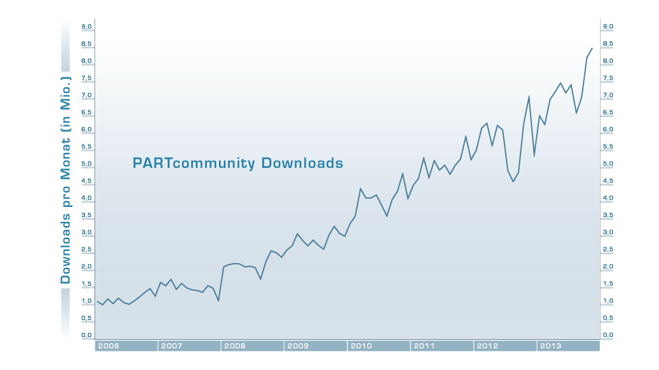 CADENAS提供的PARTcommunity是当前最为知名的零部件在线免费下载平台, CADENAS与CAD原厂,商业及媒体伙伴合作, 先后推出60多个PARTcommunity平台, 拥有的700多万注册用户主要是来自全球100多个国家和地区的工程师和采购人员, 2013年下载总量已突破8600万, 2014年预计将达到1个亿. 无论是全球知名的零部件企业,如FESTO, SMC, Airtac, ABB, NSK, THK, MISUMI, ... 还是中小型零部件企业, 都将他们的产品目录数据发布在PARTcommunity平台, 因为他们知道, 采购流程中的重要成员之一是工程师, 不能获得工程师的认可, 这些零部件企业是无法成为潜在供应商的, 随着三维CAD设计软件的广泛应用, 供应商向客户提供三维产品选型目录已经成为必要条件之一. 传统的PDF样本或是印刷样本, 只能看不能调用, 而工程师需要的是既可以浏览详细说明, 也可以直接选型配置的CAD模型. CADENAS公司是当前最专业的产品目录服务商, 已经为几百家供应商制作的三维产品选型目录, 在上海成立的卡第那思软件技术(上海)有限公司专门为中国的零部件企业提供本地化服务. 在网络平台上寻找设计所需的产品数据往往是工程师的首选, 因此, 专业的零部件在线下载平台是他们最先访问的门户, 而PARTcommunity其庞大的注册用户和下载量已经被全球700万工程师所了解, 集聚效应的影响使得这一平台成为他们访问和下载零部件的第一平台. 对于在PARTcommunity发布其产品数据的零部件企业来说, 一天24小时, 全年365天的访问下载, 使得获取下载用户的信息数量远远超过传统展会方式, 这是为什么几百家供应商选择PARTcommunity平台来发布他们产品数据的重要原因之一, 借助这个平台帮助他们找到潜在客户方式比传统方式更有效, 机会更多. |