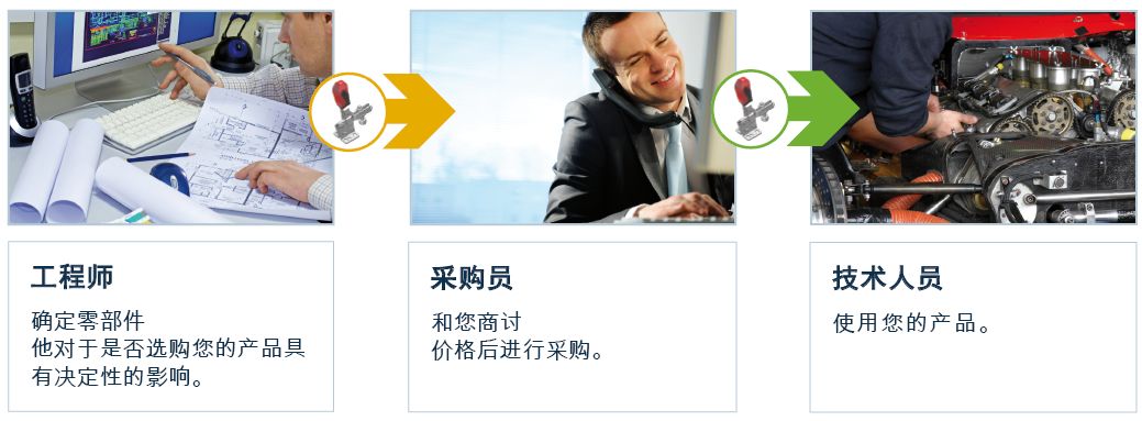 赢得客户的工程师关注是提高成为潜在供应商几率的必要前提 传统的产品市场推广对象仅仅着眼于客户的采购人员, 这种观念现在看来越来越具有片面性, 不再适应当前工业品采购的流程变化. 实际上“工程师是采购流程的第一人“, 第一个接触供应商产品的是客户的工程师. 在设计开发阶段, 工程师独立选择他认为合适的零部件; 调查表明, 近75%的零部件在设计阶段就已经确定供应商了. 零部件企业制作并提供三维产品目录, 以赢得潜在客户的工程师关注和青睐, 是提高成为供应商成功几率的必要前提. 工程师是采购流程的第一人 1, 为工程师及时提供高质量三维产品目录的重要性不容忽视 绝大多数客户都已采用三维设计软件进行产品设计, 而很多零部件企业却只能提供印刷样本或二维图纸, 客户的工程师不得不花费时间按照印刷样本或图纸绘制三维模型, 这势必影响他们的设计效率和项目周期; 一些零部件企业虽然可以提供部分三维模型数据, 但等待时间和格式单一的局限性, 很难让客户的工程师满意; 调查结果表明, 近75%的工程师偏爱提供高质量三维产品目录的零部件企业. 赢得工程师就是赢得订单 2, 传统的市场推广方案越来越昂贵并且针对性不强 零部件企业大多采用参加展会,邮寄产品样册来进行市场推广. 随着展会和产品样册成本不断攀升, 以及参观者数量和关注度的下降, 由此获得新客户的机会越来越小; 另外, 毫无目标的邮寄产品样册最终可能落到并不是真正需要人的手上, 可见传统的市场推广方式, 在投入产出以及推广效果上并不理想. 而CADENAS的三维产品目录推广方案可以让零部件企业以较小的投入获得最大收益. 众多推广平台比传统展会和广告邮寄更有针对性 3, 技术的日新月异, 市场推广方式采用最新技术变得越来越重要 目前移动互联网用户已超过桌面上网用户, 借助移动互联网社交平台, 移动应用和智能手机, 平板电脑技术的快速发展, 让工程师更快更方便获得供应商产品数据成为可能; CADENAS推出的3D CAD零部件模型下载App, 下载数量超过45万次, 无论是目标群体和巨大的市场潜力, 该平台都是供应商最佳的市场推广新途径; 另外, CADENAS也帮助零部件企业推出只包含自己产品数据的App, 这样, 供应商无论是客服水平还是技术支持手段方面都提升到一个更高的层次, 从而赢得先机. 采用更先进的推广手段更能赢得先机 4, CADENAS三维产品目录制作赢得几百家零部件供应商的青睐,可能也包括您的竞争对手 在零部件三维产品目录制作领域, 德国CADENAS是当前最为专业和知名的软件服务商, 通过自主研发的eCATALOGsolutions软件已经为全球几百家知名供应商制作了三维产品目录, 这或许也包括您的竞争对手; 无论是从市场推广必要性还是从竞争需求角度来考虑, 制作三维产品目录数据已是迫在眉睫. 部分零部件供应商截图: 几百家供应商采用CADENAS制作的三维产品目录 上述几点表明, 无论是从市场推广效率方面, 客户采购流程的变化方面, 还是行业竞争压力方面, 三维产品目录的重要性和迫切性对于还没有制作和提供三维产品目录的零部件企业来说不言而喻, 我们不能因为无法提供三维产品目录而输在起跑线上! CADENAS从事三维产品目录数据制作和帮助零部件企业进行市场推广已经20个年头, 在这一领域具有最先进的技术和最丰富的经验. 几百家客户中的很多零部件企业都是行业中的龙头, "榜样的力量是无穷的“, 对于其它零部件企业来说, 直接采纳同行业龙头企业所选择的解决方案是少走弯路最简单的方法. |