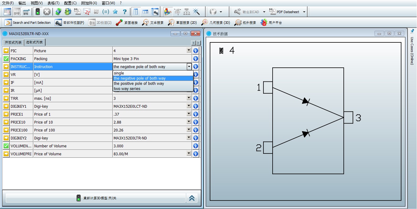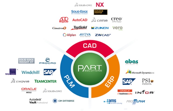 CADENAS推出的战略性零部件数据管理系统, 是目前针对企业标准件, 外购件和自制件最专业的管理系统, 它不仅提供庞大的标准件和几百家供应商数据, 而且有效提高自制件重复使用效率,避免冗余数据持续增长. 在管理结构件的同时, 也对企业的元器件管理和查询提供支持. 为产品设计提供庞大的零部件资源和强大管理工具 - PARTsolutions提供各国标准件库和几百家供应商产品数据 在PARTsolutions中涵盖如DIN, ANSI, ISO, GB等各国标准件库, 同时还有大量供应商的产品数据, 工程师在设计中所需的机械零部件资源应有尽有, 节省了工程师的大量时间. - 与CAD/ERP/PDM集成, 实现零部件管理标准化管理 PARTsolutions_CAD_ERP_PDM PARTsolutions可以与各种CAD, ERP, PDM集成和连接, 工程师在同一界面下获得零部件的完整信息, 零部件标准化管理, 申请,审批, 开放和发布有序规范 - 各种搜索方式为自制件重用提供强大支持 企业PDM下的自制件, 在PARTsolutions众多搜索方式的帮助下, 特别是几何搜索功能, 工程师可以方便快捷地找到并借用之前已经测试的成熟自制件, 这不仅节省了大量时间, 更重要的是减少了新物料的产生和不必要的成本. - PURCHINEERING功能让采购和设计部门协同工作成为可能 PARTsolutions同CAD/ERP/PDM集成后, 工程师和采购人员都可以在同一界面下获得零部件的完整信息, 不仅是几何尺寸信息, 而且零部件的物料信息, 采购信息都一目了然, 这样设计与采购协同完成零部件和供应商的优选成为可能. PARTsolutions为企业元器件的管理提供有力支持 工程师在PARTsolutions可以轻松找到所需零部件或自制件, 这不仅限于机械零部件; 同样, 针对企业的元器件的管理和查找, PARTsolutions同样可以提供支持. PARTsolutions可以提供部分元器件供应商的产品数据, 如Wago, Weidmueller, ABB, Phoniex等, 企业也可以借助PARTsolutions后台建模工具eCATALOGsolutions来创建自己的元器件库. 通过参数化表格将元器件的各种性能参数进行整理添加, 并导入图片或2D模型作为预览图, 加载技术说明文档等, 自动义分类企业自己创建的元器件库. 通过eCATALOGsolutions生成搜索索引后, 工程师可以方便地通过关键字搜索和变量搜索, 快速找到相应的元器件信息, 并提示元器件文件所在位置和编号, 然后工程师启动专用电气CAD打开相应数据. PARTsolutions支持企业元器件的查找和整理 PARTsolutions对于元器件管理提供的支持, 在于分类, 预览, 查找, 提示等方面, 以方便工程师获取准确的技术信息和快速锁定所需数据并调用. PARTsolutions可以作为元器件的知识库, 查找库. |
