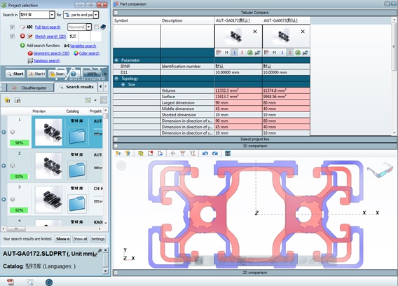 PARTsolutions在型材生产领域中可以有效避免新开模导致的浪费 模具在型材生产的过程中需要克服各种苛刻的工作条件, 模具质量是生产合格型材的保障. 模具成本在型材挤压生产总成本中占比35%左右. 另外型材市场竞争的不断加剧, 迫使生产企业在挤压模具的采购,使用,维护与管理领域投入巨大的人力物力. 除了完善模具在使用过程中的管理, 比如完整记录每套模具的生命周期, 严格控制各项生产工艺; 还要做好模具的统计分析和成本消耗管理. 目前绝大多数型材截面信息都是以DFX文件格式保存. 企业通过ERP系统实现对所有已经生产的型材信息进行集中管理. 但是随着企业的不断发展, 以及型材截面本身就千变万化所以积累的型材信息库持续膨胀. 企业急需一种自动化,智能化的管理工具以求高效重复利用已有模具资源, 提高模具使用效率. 不仅节约设计时间, 直接使用已有模具还可以迅速组织生产. 怎样自动搜索对比型材截面就成了摆在面前的一大难题. 型材界面千变万化 目前大多企业都是采用如下的管理流程 铝材新产品开发设计→截面图纸确认→新模订做→新模回厂验收→试模制度→试模合格确认→正常合格模具上机生产记录及存档→模具氮化制度→模具返修制度→模具报废制度. 而通过PARTsolutions的自动搜索可以实现下面的管理流程 铝材新产品开发设计→截面图纸确认→ 找到相同断面产品 → ...正常合格模具上机生产记录及存档→模具氮化制度→模具返修制度→模具报废制度. 比如一个具体的生产任务: a. 客户提供DFX 格式的铝型材信息, 以及其他的产品要求如,材质,表面处理,工艺等… b. 设计人员根据经验和直觉设法在海量的已有信息中找到相同或相似的记录 当产品的数量达到一定量时, 必然会涌现出一批重复的产品, 其模具设计或模具本身可以重复使用. 然而这些数据可能分散在不同的年代或客户中, 人的记忆是有限的只能记住其中的小部分, 对于大多的能够被借用的设计信息而言, 只能望洋兴叹. 但是随着创新,竞争的加剧完全依靠经验设计的模式, 没有先进的设计工具会使企业非常被动, 也很难满足市场的要求. 这就需要有一种方法能百分之百的在产品库中找到已有相同生产记录, 这对企业提高质量,效率,交货期都是有好处的. 改进提高: 依托已有数据, 主动动态分析产品的工具, 完善产品的研发过程. 实现设计-经验-再设计 在企业内部的良性循环 c1.如果有经验的设计师幸运的找到产品库中的相同的记录就可以大幅提高生产交货进度, 并降低成本. c2. 大多情况下没有发现相同的产品记录, 就需要在ERP系统中添加新的记录, 这不仅会增加不必要的工作量. 并且随着数据量的不断扩大, 造成以后的管理查找变得更加复杂. 改进提高: 降低冗余数量, 冗余数据意味着找到一个零件比设计一个零件要花费更多的时间精力! PARTsoluions 可以有效提高模具重用率 PARTsolutions管理系统充分利用企业已有的底层数据, 经过系统的统筹分析, 已经专利搜索比较技术, 帮助企业快速了解这些海量数据的商业意义, 发掘忽略的商业价值, 让混乱的数据变得有用且可操作. 不仅可以满足企业目前的具体要求, 还能持续创新,帮助客户在未来的竞争中保持优势. 具体实现过程: 1. PARTsolutions利用已有产品数据建立3D型材产品库 建立已有型材库 建议用三维CAD系统建库。每个零件需要2-3分钟(导入dxf草图, 然后拉伸)。 导入DXF图 导入DXF图 拉伸 拉伸 导入PARTsolutions型材产品库 导入到PARTsolutions 在PARTsolutions中快速定位已有设计 导人PARTsolutions由DXF文件自动生成的JPG文件进行草图搜索. 导入草图 导入草图 PARTsolutions二维搜索找到已有产品 搜索到已有模型 总结 1. 控制总量避免一物多码, 一码多物 通过PARTsoluions的创新几何相似性搜索技术可以有效整合和清理复杂的产品数据库, 自动完成数据的分析, 处理和提取. 并 以几何特征和文本特征来识别相似的零部件并进行分类, 自动生成重复件报告. 在经济,快速,高品质的完成这些繁琐的工作的同时提供集中式的信息共享平台, 让各相关部门准确的,及时的制定合理的计划, 最终实现为决策者提供数据支持. 二维三维比较 二维三维查找及比较 2. 快速找到已有设计提高重用率 帮助设计师快速有效的找到合乎设计意图的记录, 加快产品的生产进度. 如果企业能够把握住那些具有大量重用的设计, 通过设计师多次重用的方式, 一定可以起到降低成本的需求. 为了增加重用, 目前大多企业引入不同的分类系统, 然而不管怎么分类使用时都需要检索, 花费设计师大量的时间. 事实证明, 通过提高产品数据的重用率, 是可以大幅提高产品的设计效率和品质并可以明显的省企业的生产成本. 通过试用可以确定, PARTsolutions非常适合型材生产企业的业务要求, 快速发现可以重复利用的模具. - 易学易用的用户界面, 轻量化的技术, 就非常适合型材企业产品复杂度低, 对设计功能要求不高, 但设计改型需求量大 - 满足一线试用人员希望软件操作简单, 速度快的用户需求 - 通过客制化定制服务, 也能满足用户希望软件更加人性化的要求, 而不是一成不变的冷冰冰的产品. 我们可以和一线使用者紧密协作, 共同完成二次开发的产品. 而PARTsolutions的大多数标准功能也都是来自用户的直接需求. PARTsolutions的提出这些概念,技术和工具所倡导的, 