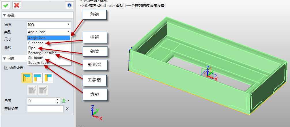 在制造业产品设计生产中,焊接的主要用途就是把小的金属材料连接成大的(按图纸或需要的尺寸),或通过连接(焊接)做出所需要的几何体。在造船厂、飞机制造业、汽车制造、桥梁,机械机床设备等都离不开焊接。三维CAD中望3D 2015 beta版现已火速推出,其中新版功能中开发了一个焊接的功能模块,主要功能包括结构构件,角撑板,顶端盖,焊缝等。为三维CAD工程师提供了工作便利,直接提升设计效率。下面将详细讲解每个功能的使用。 一、 结构构件 1) 首先打开中望3D,插入草图,见下图: 图1/三维CAD中望3D草图界面 2) 创建草图外形,创建结束之后,点击退出草图。 图2/退出中望3D草图 3) 点击结构构件功能,创建各式的钢结构。 图3/创建钢结构 创建以上钢结构后,在标准里面选择制式。如下图: 图4/选择制式 接下来选择各种构件的形状,如下图: 图5/选择构件形状 在选择好构件形状之后,我们可以选择边角的处理方式,因为我们可以选择各种搭接方式。 图6/选择边角的处理方式 并且可以改变钢结构的旋转角度,系统默认为0度3002根据实际情况,选择好各个选项后, 就可以生成钢结构了 图7/生成钢结构 二、 角撑板 下面我们介绍如何创建角撑板,首先点击“角撑板”命令,选择需要创建的面1以及面2,可以选择轮廓类型,以及设置需要的尺寸大小。 图8/选择面 我们也可以设置倒角的大小以及位置,当然我们也可以设置这个支撑的宽度,我们可以手动输入数值,或者滚动鼠标中键来设置实时预览。 图9/设置倒角的大小以及位置 对于这个支撑的位置我们可以通过下方的位置来控制,也可以通过偏移距离更改到任意位置。 图10/支撑的位置可以通过下方的位置来控制 三、 顶端盖 顶端盖功能是在封闭的区域断面生成一个盖子,并且这个盖的大小尺寸,以及厚度都可以随时修改,并且我们可以调接倒角大小。 图11/在区域断面生成盖子 四、 焊缝 焊缝功能是为是在几个构造之间创建焊缝造型。点击焊缝功能,我们可以选择焊接边,也可以通过相交间接的创建焊接边,也可以选择焊缝的半径。 图12/点击焊缝功能 可以选择焊接的起始位置以及长度,并且我们可以选择是全焊接还是点焊,并且可以控制焊缝的间隙长度以及焊缝的距离。 图13/选择焊接的起始位置以及长度 结过几个步骤后,下面呈现出的是不同的焊接效果,见下图。 图14/不同的焊接效果 通过三维CAD中望3D进行结构构件、角撑板、顶端盖、焊缝的几种演示,展现出中望3D 2015新版的全新焊件模块功能的便捷性和灵活性,更大解决了工程师们在进行产品设计过程中遇到的复杂性。中望3D 2015 beta版除了推出全新的焊件功能模块,同时全面优化了建模的流畅性、工程图3D标注、CAM加工的精准性、数据兼容性等,为企业、个人用户提供更高效的数字化设计/制造全流程方案。为给用户更好的使用体验,现火热进行中望3D 2015有奖测评活动,只需反馈使用建议,即可赢取iPad Mini和中望3D 2015正版激活号!请登录中望3D2015专题页面//www.zw3d.com.cn/special/list-98.html进一步了解新功能及参与有奖测评。 |
