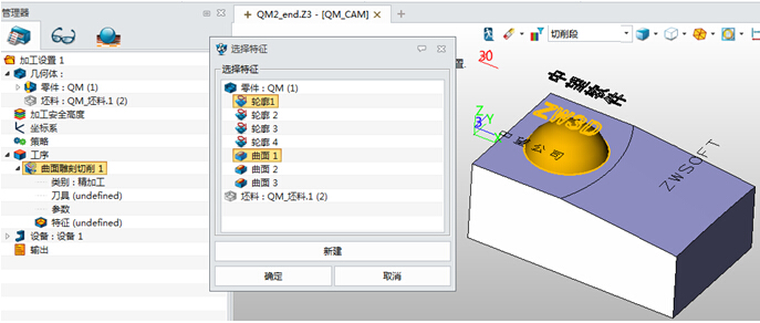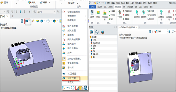 三维CAM编程过程中,经常会遇到需在零件表面(曲面)上刻字的情况。很多专业的三维CAD/CAM软件虽然功能强大,但是在曲面上刻字操作繁琐。 现在,工程师使用先进的三维设计软件中望3D,就可快速地实现在零件表面(曲面)刻字了,操作也非常简便: 第一步: 在三维模型上写出要雕刻的文字,然后点击“插入草图”,选择“XY平面”(图1)进入草图界面。 点击“文字”输入文字,选择对应的文字属性后点击“确定”,如下图2所示。 使用同样的命令,继续输入其它文字(图3),其中汉字的单线字需从中望CAD导入,完成后退出草图。 第二步: 进入加工环境,直接选择”加工方案”或点击右键菜单选择”加工方案”,如下图4所示。 第三步: 进入选择“曲面雕刻”命令(图5),进行参数设置。 选择要加工的特征,依次选择“轮廓”和“曲面”(图6),完成后确定。 再选择加工刀具,直接从中望3D刀具库中选择D1的球刀,如下图7所示: 设置加工深度-0.1,切削数4,下刀量0.025(图8),其它参数默认即可,选择完成点击“计算”,刀轨就完成了,如下图9所示: 用相同的方法设置其它刻字的参数(图10)。 第四步: 输出G代码,先选择“3轴设备”对应的后处理“ZWPOST”(图11)后确定。 最后,选择要输出的刀轨(如下图12所示),G代码就完成了。 通过以上4个步骤,工程师就能够加工出符合要求的曲面刻字效果了。中望3D易学易用,而且在实际加工中智能高效。 更多中望3D教程,请点击//www.zw3d.com.cn/service/source/list-65.html?fm=pr 三维设计软件中望3d免费下载://www.zw3d.com.cn/product-58-1.html |