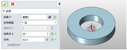 法兰盘属于回转体零件,是一类重要的零件,主要起到联接作用。本文将向大家介绍如何使用三维CAD/CAM软件中望3D,快速地创建出法兰盘零件的模型,在这个操作过程中,三维CAD初学者很好地掌握到利用中望3D的拉伸、圆周阵列、添加加强筋、倒圆角等特征操作构建三维实体模型的方法。 首先,我们先对法兰盘模型进行分析。如下图所示,作为本教程实例的法兰盘零件,其主体是两个同轴的圆柱体组合体,表面均匀分布12 个等径的圆孔和加强筋,其中,部分轮廓线为圆角过渡。 图/法兰盘模型 那么我们该怎么来完成整个建模过程呢?基于中望3D,笔者把建模的思路总结如下:在该零件建模时,可以先利用拉伸凸台特征来构建两个圆柱体组合体。由于法兰表面的圆孔和加强筋是围绕零件中心轴均匀分布的,因此只要建立一个圆孔和加强筋,再利用圆周阵列特征复制出其他的孔和加强筋即可,而不必一个个地分别构建。最后,再生成圆角过渡,就可以完成整个建模了。 下面我们将其具体的建模步骤分解如下: 第一步:构建圆柱组合体 (1)新建零件。 图1 /零件创建界面 (2)选择xy平面插入草图,开始绘制草图(标记为草图1)。 (3)单击“圆”,绘制以原点为圆心,半径分别为120mm和60mm的两个圆。如图2所示。 图2/绘制草图 (4)点击“拉伸”功能,进行参数设置(图3),得到圆柱1,如图4所示。 图3 /拉伸设置窗口图4拉伸后的效果 (5)点击“插入草图”选项,并平面选择圆柱体上的外端剖面,获取草图2,如图5、6所示。 图5/插入草图 图6/绘制草图2 (6)在草图2的基础上,绘制一个以坐标原点为圆心,直径分别为75mm和55mm的圆,然后点击“拉伸”,得到圆柱2。 图7/拉伸后的圆柱2 第二步:生成均布圆孔 (1)点击“插入草图”,获得草图3,平面选择圆柱1上端平面。 (2)绘制一个距离圆柱体轴心为47mm的点,如图8、9所示。 图8/新建的草图3 图9/完成点的绘制 (3)点击“孔”选项,根据本案例中零件构造情况,选择点所在的位置,按照图10,设置相关参数,绘制一个直径为12mm的孔,效果如图11。 图10 图11 (4)点击“阵列”选项,选择圆型整列,相关参数设置可参考图12,设置完毕后,将得到图13的结果。 图12 图13 (5)点击“插入草图”,以xz平面绘制草图4,如图14所示。 图14/草图4的绘制 (6)点击“移动”选项,选择草图4中绘制的线,绕方向旋转。方向为z轴方向,角度为15度。如图15所示。 图15/旋转效果图 (7)点击“筋”选项,相关参数设置参考图16,筋的厚度为5mm,设置完成后将得出图17的效果。 图16 图17 (8)点击“阵列”,相关参数设置参考如图18所示,该步骤与上面对孔进行阵列操作是类似的。 图18 (9)点击“圆角”,为法兰盘生成圆角特征,圆柱的边圆角为2mm,筋的边圆角为1mm,如图19所示。 图19 经过上述两大步骤的操作,即可通过三维CAD/CAM软件中望3D完成法兰盘零件的建模。 通过本次建模的操作,相信大家能更好地掌握到如何运用中望3D的拉伸、圆周阵列、添加加强筋、倒圆角等特征操作,进行三维实体模型构建的方法。 更多中望3D教程,请点击://www.zw3d.com.cn/service/source/list-65.html?fm=pr 三维设计软件中望3d免费下载://www.zw3d.com.cn/product-58-1.html |