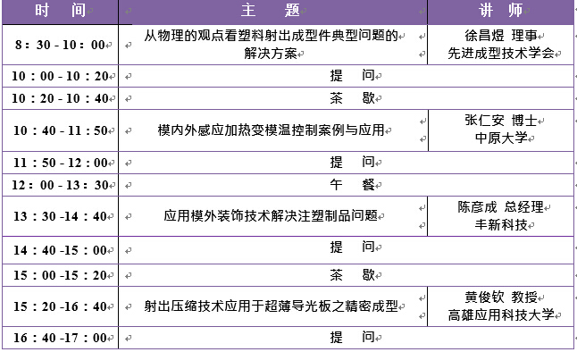 随着工业4.0时代的来临,大数据的去芜存菁、人工智能的推陈布新和自动化的有效普及,成为举世群雄求存胜出的关键。 今日的中国已然是制造业的大国, 何时才能成为设计和制造的强国? 包括TPP的各项条款制定都给我们带来了无限的沉思与巨大的反响。 在列强环伺的大环境下我们必须改弦更张、力学力行、发愤图强,方能九合诸侯、一匡天下! 欲穷千里目,更上一层楼,先进成型技术学会一年一届度的年会培训课程邀请了四位讲师和业界分享最新的观念和作法,欢迎大家踊跃报名参加! 培训日期:2015年11月19日 报到(13:00~ 22:00)广州南沙资讯科技园迎宾楼 培训地点:2015年11月20日 培训(08:30~ 17:00)广州南沙资讯科技园(广州南沙经济开发区) 主办单位:先进成型技术学会(SAMT) 培 训 费 用:1500元/人 会员8折优惠 培训对象:注塑与模具相关管理、研发、工程、技术、营销人员。 课程特色: 主题明确,观念新颖,理论结合实际。 系统传授注塑成形的核心知识与技能。 现场解决学员提出的疑难杂症。 提高学员分析问题的能力。 降低注塑产品的不良率、减少材料、能源、时间、人员的浪费,大幅提高生产力。 课程主题 一、从物理的观点看塑料射出成型件典型问题的解决方案 试模及量产时,经常遭遇的问题主要可分为两类:一是变形、二是外观。 业者为此花费了可观的资源,却经常苦于良率偏低,甚至无法交货。 前述问题,80%出自设计不良。 问题诊断(Trouble Shooting)和产品、模具与工艺设计(Part, Mold and Process Design)息息相关, 其间的因果关系,如果不能理顺,即使是劳民伤财、耗时经月,仍然难毕其功。 课程中将以经典案例从物理的观点解析住塑问题诊断和产品、模具与工艺设计,兼顾Know-how(知其然)和Know-why(知其所以然)。 茅塞顿开、心领神会后,可以举一反三、闻一知十,从事研发、设计或诊误的工作,当能得心应手、无往不利。 二、模内外感应加热变模温控制案例与应用 高精密与微结构成型品,通常在尺寸稳定性与产品复写性控制上时常遇到挑战。为了达到免喷涂高亮面的产品表面质量,必须先克服结合线与缩水痕等成型问题。另外,由于产品薄化或肉厚差异设计,造成成型品翘曲变形或应力痕等问题,严重影响成型良率。加上最近在碳纤维复合材料成型的应用发展上,高温成型与周期时间成为量产上一项极具挑战的课题。为了克服上述问题,变模温技术持续发展,且各有其应用特色。本讲题针对当目前快速发展中的各类变模温技术原理与能源使用进行分析,内容包括目前量产应用的加热方式,与最新开发中的模具表面加热技术。并介绍各类注塑成型与最新热压技术开发应用案例,同时讲解各项快速冷却技术发展,协助学员全盘了解各类技术特性与应用方向。 三、应用模外装饰技术解決注塑制品问題 模外装饰技术(Out-Mold Decoration,简称OMD)有别于模内装饰技术(In-Mold Decoration,简称IMD)须于射出成型制程中进行加工,可减少由于射出成型过程中所带来之高熔胶温度、高模具温度、高成型压力及高射出速度所带来不良影响,可提升制程良率及增加应用面。因此,对于薄件制品、含高玻纤制品…,所造成之结合线、浮纤,均可有效改善。因此,在课堂中讲师会针对此一问题,进行说明。 四、射出压缩技术应用于超薄导光板之精密成型 3C产品薄型化一直是影像显示器重要的发展课题。其中的关键零件导光板(LGP)亦由过去的厚度1~1.2mm降至目前的0.4~0.6mm,随着薄型化的发展趋势,溶胶在模穴中的流长比(流动长度/厚度)大幅增加,因此传统的射出成型(Injection Molding)在高射速及高射压的成型条件下,常衍生分子配向、压力不均、应力过高、模具变形等现象,导致LGP光学品质降低且成形品易发生翘曲变形的问题。射出压缩成形(Injection-Compression Molding,ICM)结合了射出成形与压缩成形,其成形方式主要是在一般射出成形制程中加入压缩闭模的动作,此种成形方式具有相当多的优点,包括:降低残余应力減少成品双折射率差、减少分子定向、均勻保压减少收缩不均及翘曲、增进尺寸精度、提高微结构转携率等。本课程将介绍ICM的制程原理及模具结构,並以导光板为例,说明如何应用ICM技术在超薄导光板的精密成型,达到提高光学品质及降低翘曲的目的。 先进成型技术学会(SAMT)大陆秘书处 联系人:张晓东 13641338137 先进成型技术学会 Fax: +86-10-87561321 E-mail:samtbeijing@vip.126.com /samtbeijing03@126.com 2105年10月10日 //www.samt.org.cn Workshop for Advanced Molding Technology 日期: 2015年11月20日 (星期五) |