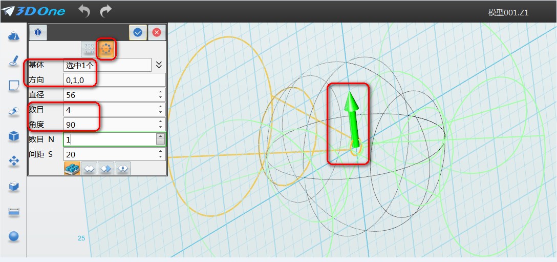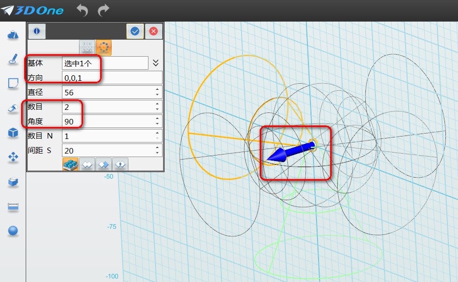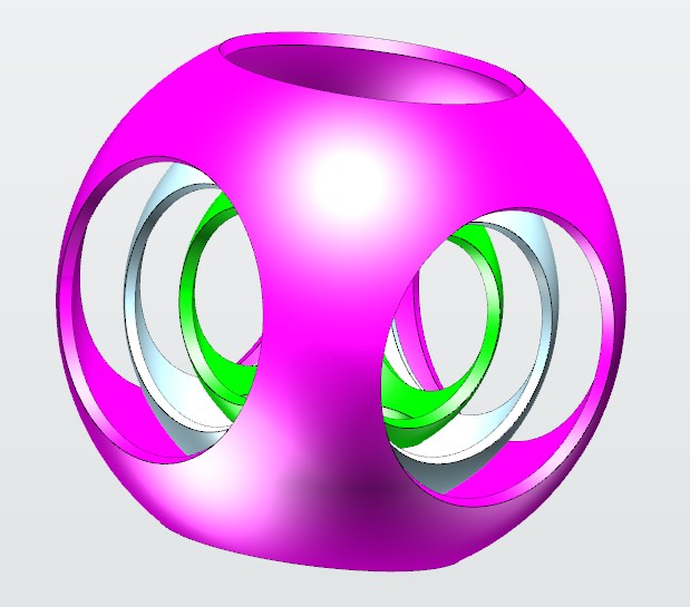 3D设计打印技术逐渐风靡世界,中小学3D打印课程进入了很多同学们的课堂。老师和同学们通过使用3Done这一3D打印设计软件,把各式各样的教辅用具设计打印出来。这既能将头脑中的灵感具体呈现在大家面前,又激发了同学们对课堂学习的兴趣。这次,我们将用3DOne设计套球小课件。现实中的套球一般由木头、象牙或玉石雕刻而成,制作相当繁复,工艺要求极高。然而再复杂的套球,用3DOne软件来设计的话,也会变得十分简单啦! 3DOne套球主题小课件 下面就让我们来学习一下套球的设计步骤吧: 一、 绘制球体 2、选择平面绘制区域,中心输入0,R=30,如图所示: 4、 点击键盘Ctrl+F,切换成静态线框,如图所示: 二、 绘制圆锥体 2、 选择平面绘制区域,输入中心0,R=30,L=56, r=3.如图所示: 图3 基体选择圆锥体,方向定于锥形体的垂直方向,进行阵列,如图所示: 5、方法一样,继续阵列生成球体的下方圆锥,如图所示: 选择镜像平面,镜像生成另一端,如图所示: 同理绘制执行“一、绘制球体”:绘制半径40,半径50的空壳圆,如图所示: 三、 组合编辑 2、基体选取3个空壳圆,合并体选择6个圆锥体,选取布尔求差,如图所示: 至此,3DOne套球小课件建模步骤就完成了。除了这个3D教学小课件外,3DOne软件还可以设计出更多充满创意的物件;同时建模的过程,锻炼了设计者的立体空间思维。 |