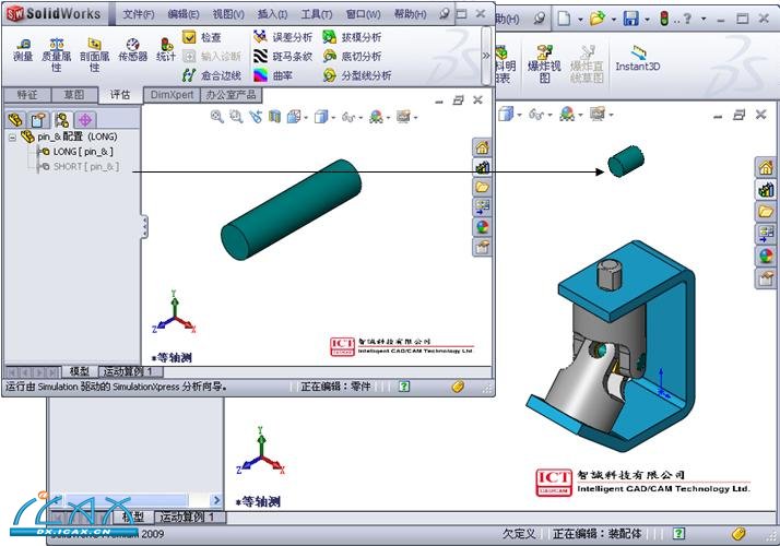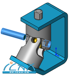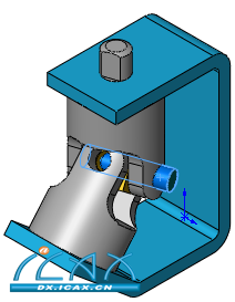 步骤28 添加同轴心配合 在零件Yoke_female和pin的圆柱面之间添加【同轴心】配合关系,如图1-27所示。 当使用配合关系对话框时,可拖动零件pin,如图1-28所示。 图1-27 图1-28 步骤29 添加相切配合 在零件pin的末端平面和零件Yoke_female的圆柱面之间添加【相切】配合关系,如图1-29所示。 图1-29 步骤30 层叠窗口 从下拉菜单中选择【窗口】/【层叠】。使零件和装配体窗口都可见。切换到零件pin的ConfigurationManager。 步骤31 拖放配置 从零件窗口的ConfigurationManager中拖动SHORT配置,并放置到装配体的视图窗口,如图1-30所示。用户可以从ConfigurationManager中拖放任何配置,不一定是激活的配置。 图1-30 步骤32 查看第二个实例 现在装配体中增加了零件pin的第二个实例,此次使用的是SHORT配置。该实例加入后,便会在FeatureManager设计树中显示相应的配置类型名,如图1-31所示。 步骤33 添加【同轴心】和【相切】配合关系来约束零件pin的第二个实例,如图1-32所示。 图1-31 图1-32 步骤34 关闭pin文件,并最大化装配体窗口 步骤35 拖动零件进行复制 按住Ctrl键,从装配体FeatureManager设计树中拖动零部件pin的SHORT配置,得到了SHORT配置的另一个实例,如图1-33所示。 步骤36 隐藏零件bracket 同时按下Shift键和左箭头一次,改变视图的方向。选择零件bracket,单击【隐藏/显示零部件】 工具,如图1-34所示。 图1-33 图1-34 步骤37 完成配合 使用【插入配合】命令添加【同轴心】和【相切】配合关系,完成该零件的配合,结果如图1-35所示。 步骤38 显示零部件 再次选择零部件bracket,并单击【显示/隐藏零部件】命令以恢复图形的显示,如图1-36所示。 图1-35 图1-36 步骤39 回到上一视图状态 单击视图工具栏中的 ,可以回到前一个视图状态。无论视图状态是否保存,每次单击该按钮,系统就退回到列表中的前一个视图状态。单击一次该按钮,回到原先的“等轴测视图”状态。 步骤40 零部件属性 右键单击零件pin<3>,从快捷键菜单中选择【零部件属性】命令。在【所参考的配置】选项中选择SHORT配置。利用该对话框还可以改变零件在装配体中使用的配置、压缩状态,也可以隐藏一个实例。 单击【取消】。 |