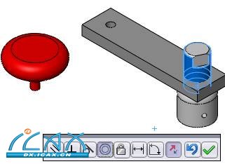 步骤41 新建装配体 使用Assembly_MM模板创建新的装配体。在【插入零部件】的PropertyManager中,单击【保持可见】 ,并向装配体中添加零件crank-shaft。将该零件放置在装配体的原点并设为【固定】状态。命名该装配体为“crank sub”,如图1-37所示。 步骤42 添加零部件 使用同一个对话框,向装配体中添加零件crank-knob和crank-arm,如图1-38所示。关闭对话框。 图1-37 图1-38 步骤43 使用智能配合添加同轴心配合关系 按照以下步骤,使用【智能配合】技巧来添加【同轴心】配合关系: 1) 单击选中零件crank-arm的顶部圆柱表面。 2) 按住Alt键并拖动零件crank-arm。 3) 在零件crank-shaft的圆柱表面上移动零件crank-arm。 4) 当显示智能配合 提示时,放置零件crank-arm。该提示表明配合关系是【同轴心】。 5) 选中【配合弹出】工具栏中的【同轴心】配合类型。 在零件crank-arm和crank-shaft之间,便加入了【同轴心】配合关系,如图1-39所示。 图1-39 步骤44 使用智能配合添加平行配合关系 旋转零件crank-arm,并使用拖动的方法选择配合平面。选中配合平面,按下Alt键并拖动零件crank-arm到零件crank-shaft的平面上。当显示智能配合 提示时,放置零件crank-arm。该提示表明平面间的配合关系是【重合】关系。 使用【弹出配合】工具栏,将配合关系切换为【平行】配合类型,如图1-40所示。 图1-40 步骤45 使用智能配合添加重合配合关系 选择零件crank-arm的边,按下Alt键并拖动零件crank-arm到零件crank-shaft的平面上。当显示 工具提示时,放置零件crank-arm。该提示表明边和平面间的配合关系是【重合】关系。使用【配合弹出】工具栏来确认【重合】配合关系,如图1-41所示。 图1-41 步骤46 使用智能配合的“栓和孔”添加配合关系 “栓和孔”是【智能配合】的一种特殊情况。“栓和孔”在一次拖放中创建两个配合关系。经过旋转零件crank-knob,就可方便地实现这种操作。选择零件crank-knob的圆形模型边,按下Alt键并拖动零件crank-knob到零件crank-arm顶部的圆形模型边上。当显示 符号提示时释放Alt键。该提示表明在这两个零件间添加了【重合】和【同轴心】两个配合关系。 按下Tab键反转零件crank-knob,对齐并放置它,如图1-42所示。 图1-42 步骤47 查看配合 右键单击零件crank-knob,从快捷键菜单中选择【查看配合】 。只有选中的部件和与之有配合关系的零部件被显示出来。每个配合都附有标签以显示配合关系以及配合所使用的几何体。同时【查看配合】列表出现在PropertyManager中。单击图钉 将标签固定在屏幕上直到它的显示被去除,如图1-43所示。 图1-43 步骤48 自动隐藏按钮 单击【查看配合】列表上的图钉 并单击屏幕以去除它的显示。 步骤49 保存 保存该装配体,并保持打开状态。 |