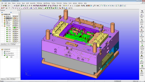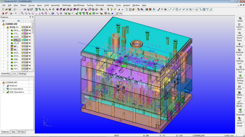另外,这样的工作模式也为公司培训新进员工节省了时间和人力,统一了整个部门的数据库档案管理。同时主管审核模具项目时也一目了然,可以进行全方位周密的考量。 2、灵活的分工作业 正因为软件使用的统一、员工掌握技能的相同,模具项目在开展过程中不会造成工作分配不均衡的情况,即不会发生某一时段工作集中在某一岗位,而其它岗位处在等待状态的情况。 CimatronE提供了完善的协同管理模式,可以支持多名设计人员同时工作,共同完成一套模具的设计且互不冲突、不重复。整个项目的工作能被灵活地分配给几位工程师同时进行,既均衡了员工工作量,提升了设计效率,缩短了设计时间,也增强了团队合作的凝聚力。