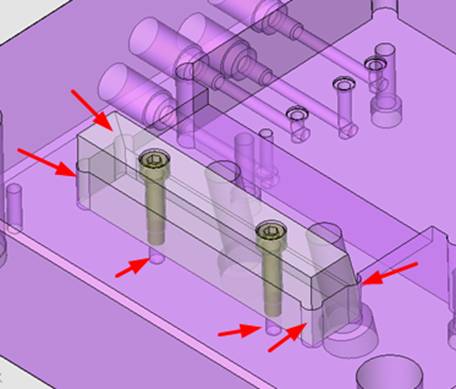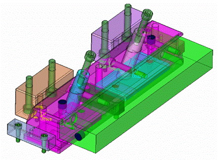 结构固定的机构,如滑块机构、锁模块机构等等还能以一个小装配的方式加载到模具上,即同时加载多个零件,节省了反复调取文档的操作时间。