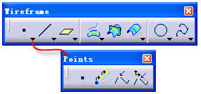 “打点画线铺面”这句话已成了造型工作者的开场白。可见点、线乃曲面构建的基石,高质量的曲面源自于高质量曲线。创成式外形设计允许用户创建线框几何图形,例如,点、直线、平面和曲线。 本章节我们就来学习线框几何图形的创建。创建线框几何图形的指令可通过线框(Wireframe)工具栏访问(更多关于工具栏的描述请访问第一章基础指南的相关章节内容)。通过该该工具栏相关指令右下角的下拉箭头可以访问更多的指令。线框指令大致可分三个类别栏,其中包括点/线/基准平面、投影/混合/偏移和圆/圆锥/曲线,如图4-21所示。用户也可以通过下拉菜单中的“插入(Insert)”>“线框(Wireframe)”菜单访问这些指令工具。 图4-21 |