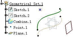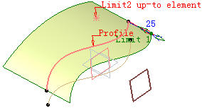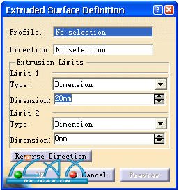 1)拉伸(Extruded)曲面创建。允许以轮廓沿给定的方向拉伸曲面。 打开\Training Part\GSD\ Extrude.CATPart文档,如图4-32所示。 图4-32 图4-33 选择“混合.1(Combine.1)”作为要拉伸的“轮廓 (Profile)”,“zx平面(zx plane)”作为拉伸“方向 (Direction)”的参考元素,定义“限制 1 (Limit 1)”的“类型(Type)”采用“尺寸 (Dimension)”限制并输入值25mm: 如有需要用户可定义“限制 2 (Limit 2)”或单击“反转方向 (Reverse Direction)”按钮以反转所创建的曲面至另一侧。这里定义限制“类型(Type)”为“到/至元素 (Up-to element)”并选择“点.1(Point.1)”作为限制的参考元素,预览中的3D几何如图4-34所示。 图4-34 所需元素定义后,单击“确定 (OK)”创建拉伸曲面,拉伸曲面(标识为Extrude.xxx)即被添加到特征树中。 提示: ● 拉伸轮廓可以是任意曲线或边线,如果用户定义的轮廓是草图轮廓,则系统会以草图轮廓的平面作为拉伸方向的参考。 ● 拉伸方向的参考元素可以是直线或直边线、轴、平面或平表面;用户不能定义曲面本身与轮廓自交的拉伸方向。 ● 限制“类型(Type)”为“到/至元素 (Up-to element)”的参考只能是点、顶点或基准平面而且必须确保参考元素可以修剪整个拉伸曲面。 |
