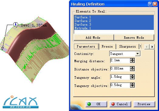 2)修复。 该指令仅用于接合间隙较大的曲面几何,但必须付出误差的代价。
