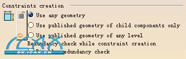 5.12 约束(Constraints) 1:粘贴部件 (Paste components) 1)不应用装配约束 (Without the assembly constraints):粘贴一个或多个部件并且不对其应用装配约束。 2)仅在复制后应用装配约束 (With the assembly constraints only after a Copy):仅在复制命令执行后,粘贴一个或多个部件并对其应用装配约束。 3)仅在剪切后应用装配约束 (With the assembly constraints only after a Cut):仅在剪切命令执行后,粘贴一个或多个部件并对其应用装配约束。 4)始终应用装配约束 (Always with the assembly constraints):粘贴一个或多个部件并始终对其应用装配约束。 2:创建约束 (Constraints creation) 1)使用任意几何图形 (Use any geometry):允许您选择任意几何元素。 2)仅使用子部件的已发布的几何图形 (Use published geometry of child components only):允许您选择属于子部件的任何已发布元素。 3)使用任意级别的已发布的几何图形 (Use published geometry of any level):允许您选择任何已发布元素。 3:快速约束 (Quick Constraint) 1)相合 (Coincidence) 2)偏移 (Offset) 3)角度 (Angle) 4)平行度 (Parallelism) 5)垂直度 (Perpendicularity) 6)(Creation verified constraints first) :定义是否要使用快速约束 (Quick Constraint)命令创建已验证的约束 |