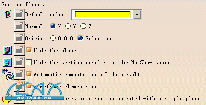 7)剖面切割线架元素(Wireframe elements cut):选中此选项后,则采用线框元素并且截面平面可切割任何现有的线框元素。“点”表示平面和线框元素的相交点。如果已清除选项,则不切割线框元素。