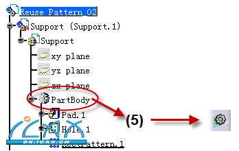 1)打开\Training Part\Assembly Design\Reuse Pattern_02.CATProduct 装配图档,产品里面包括两个 CATPart文档,如下图: