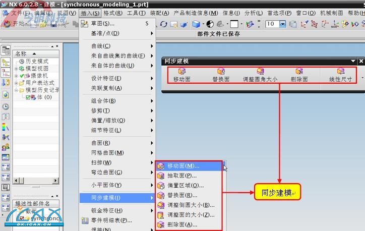同步建模技术是NX6.0的突破性进展。同步建模命令用于修改模型,而不考虑模型的原点、关联性或特征历史记录。模型可能是从其他 CAD 系统导入的、非关联的以及无特征的,或者可能是具有特征的原生 NX 模型。通过直接使用任何模型,NX 可省去用于重新构建或转换几何体的时间。通过同步建模,设计者可以使用参数化特征而不受特征历史记录的限制。同步建模主要适用于由解析面(如平面、圆柱、圆锥、球、圆环)组成的模型。这未必指“简单”的部件,因为具有成千上万个面的模型也是由这些面类型组成的。因为同步建模命令比较多,在此章将选择部分进行讲解。 【无历史记录模式】在无历史记录模式下,您可以根据模型的当前状态创建和编辑模型,而无需有序的特征序列。只能创建不依赖于有序结构的局部特征。当您需要探索设计概念并且不必提前计划建模步骤时,无历史记录模式很有用。这对于下游修改(如加工)也很有价值,在修改过程中部件模型可能缺少历史记录,或者机械师不愿意冒险进行更改。在无历史记录模式下,您可以使用许多在历史记录模式下可用的相同的命令。有些命令创建局部特征,这些特征作为特征集合而列在部件导航器中,与任何重播顺序无关。尽管局部特征看上去与部件导航器中基于历史记录的特征相似,但编辑这些特征所需的时间并不随特征列表的增加而增加。局部特征相互独立,对它们进行编辑时,没有可回滚或重播的历史记录。同步建模”命令有助于您更有效地使用无历史记录模式。通过这些命令,您的建模意图将依赖于面和特征识别,它们有助于您标识某些几何条件。“同步建模”命令中的面查找器选项有助于根据控制的设置来选择相关的面。 【操作主要菜单与工具】 本章节Part文件:同步建模.rar |
