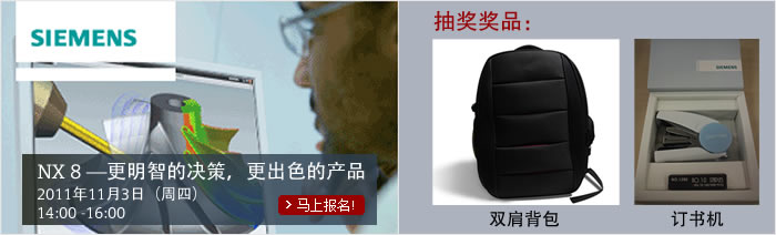 应客户的需求,NX8在包括 CAD 建模、验证、制图、仿真/CAE、工装设计和加工流程等全方位进一步进行功能增强,以提高整个产品开发过程中的生产效率,帮助各个公司以较低的成本更快地提供质量更高的产品, 包括: • 增强的全息三维:NX 中的全息 3D (HD3D) 环境和可视化报告工具经过了扩展,能为验证、产品模板和其他应用实现丰富的可视交互和信息交付。 • 增强的设计能力:NX8提供出了模块化设计功能,能简化复杂设计的建模和编辑,并支持多位设计师并行工作。经过改进的同步建模功能,在更短的时间内实现更多设计备选方案的评估…… • 仿真增强:NX 8 推出了超过200项NX CAE和NX Nastran新功能,包括系统级仿真,外部超单元系统建模,快速构建、更新和仿真分析模型,作出更明智的工程决策和更快地提供更好的产品 …… • 制造增强:NX8中新的编程处理器提供了对孔、槽和腔等呈规则形状的特征最高效的编程方法,让机械零部件编程变得快速而简单。扩展了多轴加工,多叶片叶轮和叶盘方面的功能…… 想了解更多内容,请参加我们的网络研讨会。报名并参加本次研讨会的朋友,将有机会在线抽取西门子背包等精美礼品。 |